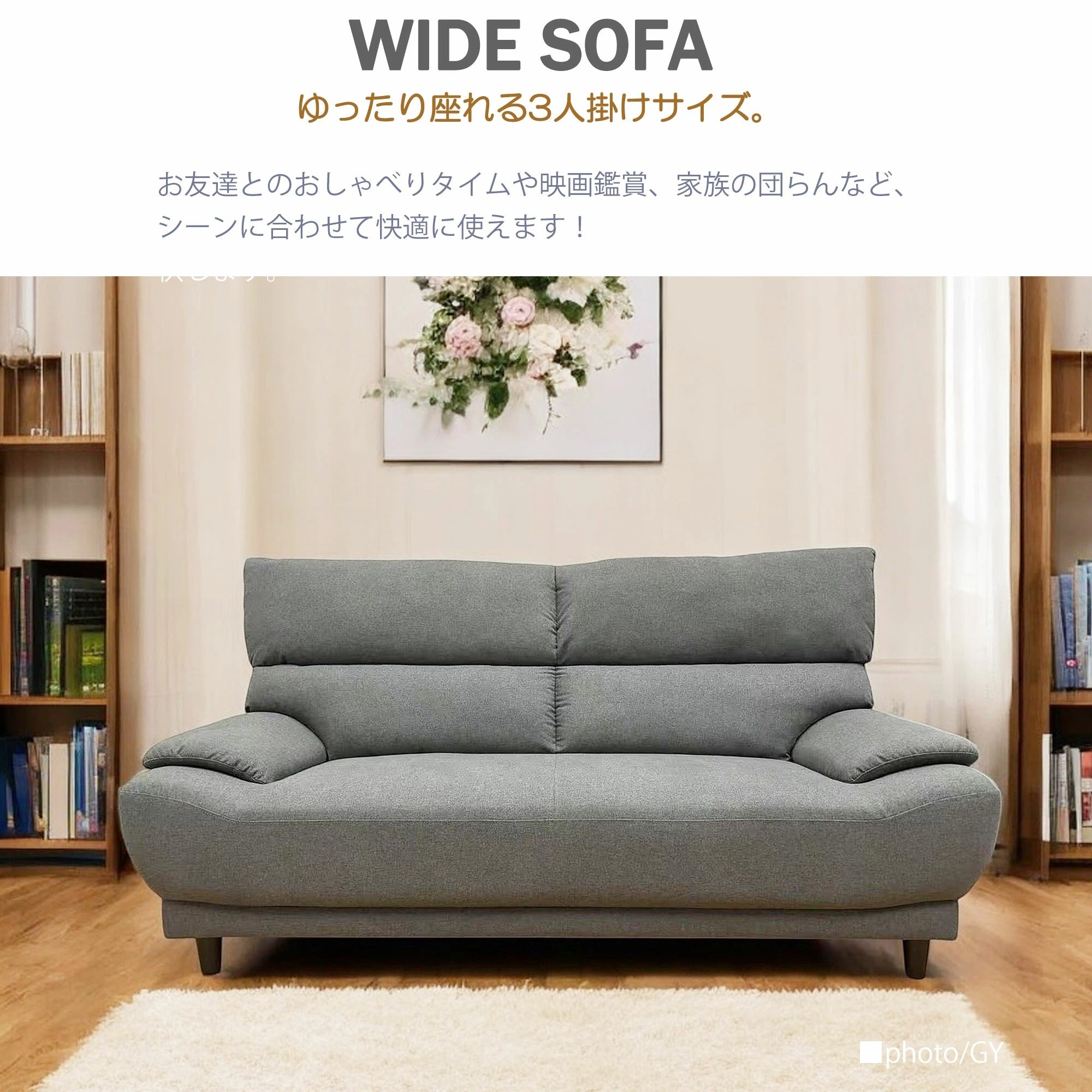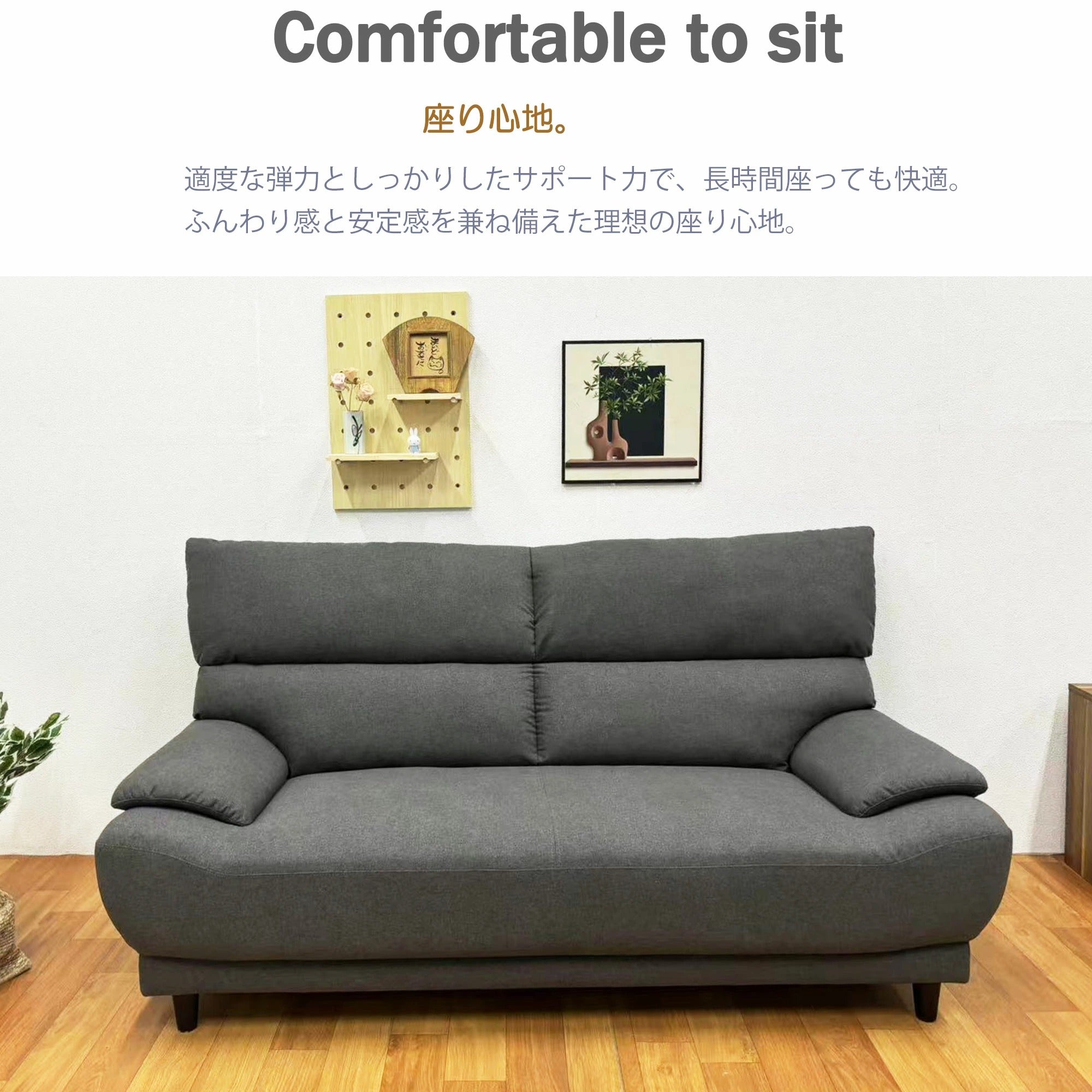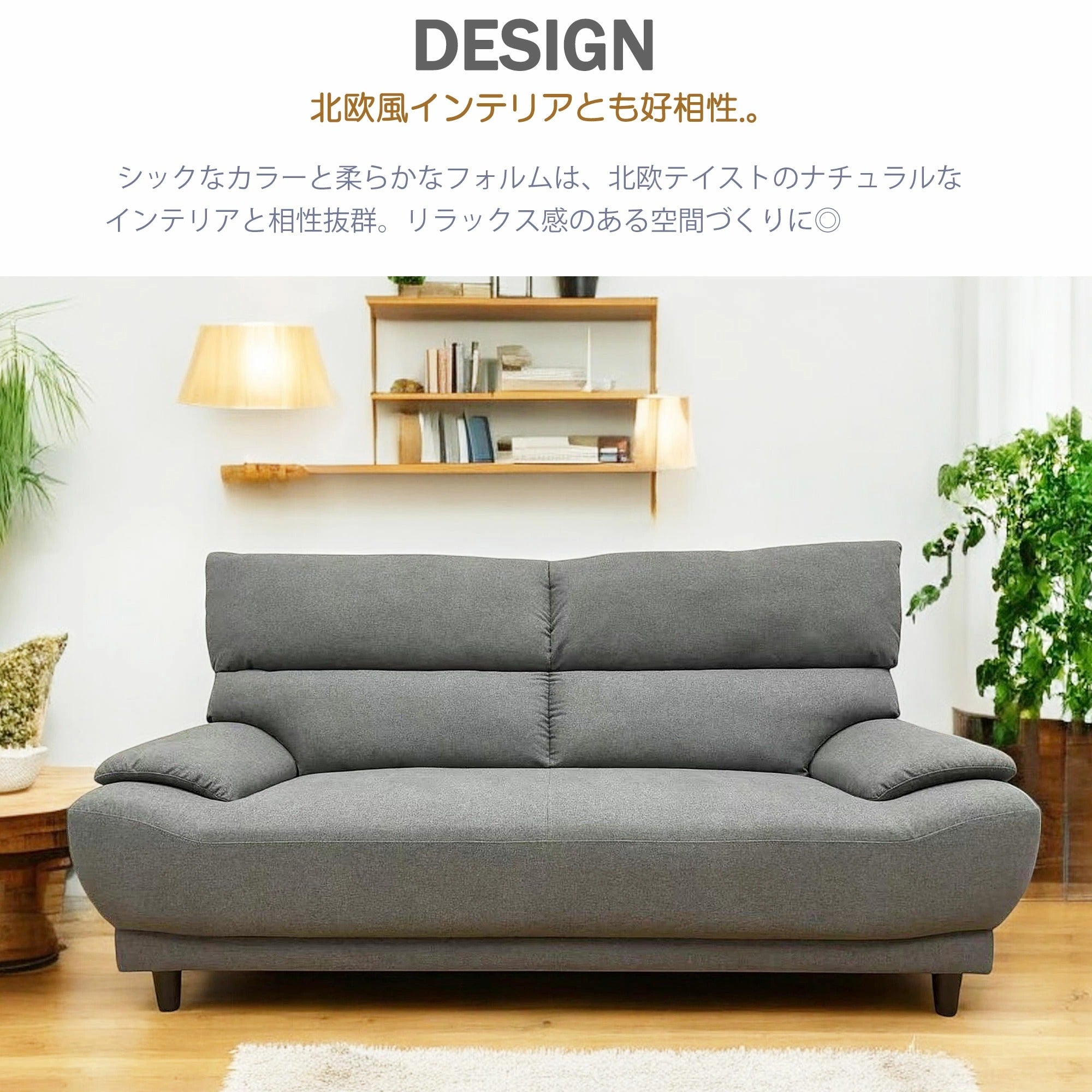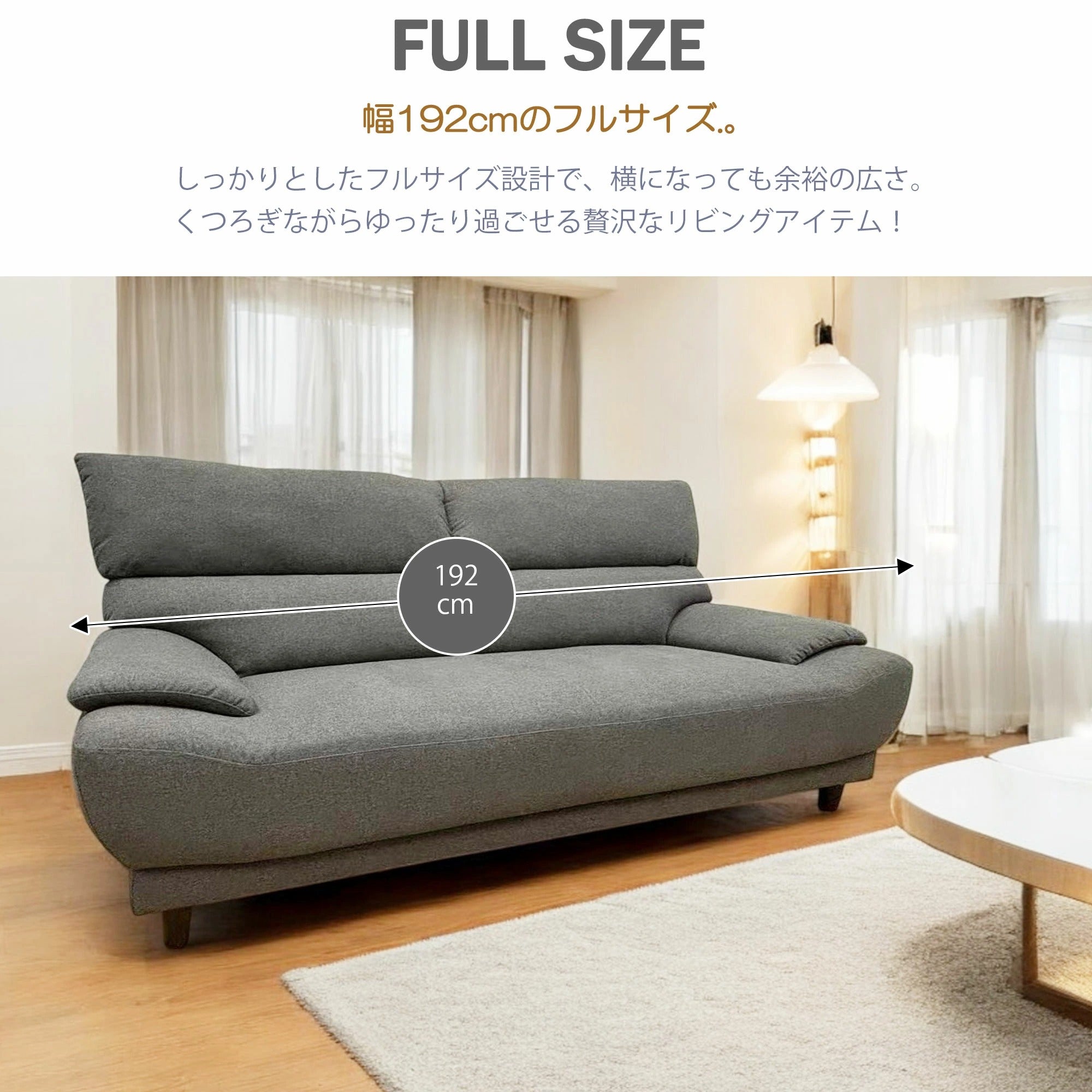 このソファは、北欧風インテリアにぴったりのデザインで、幅192cmのフルサイズが特徴です。3人掛けでゆったりと座れるため、家族や友人とのくつろぎの時間に最適です。ハイバックタイプで、適度な弾力としっかりしたサポート力を提供し、長時間座っても快適さを保ちます。ファブリック張りの素材は、柔らかさと耐久性を兼ね備えています。さらに、背もたれが外れる分割タイプなので、移動や配置換えも簡単です。おしゃれなグレーの色合いが、どんな部屋にも調和します。