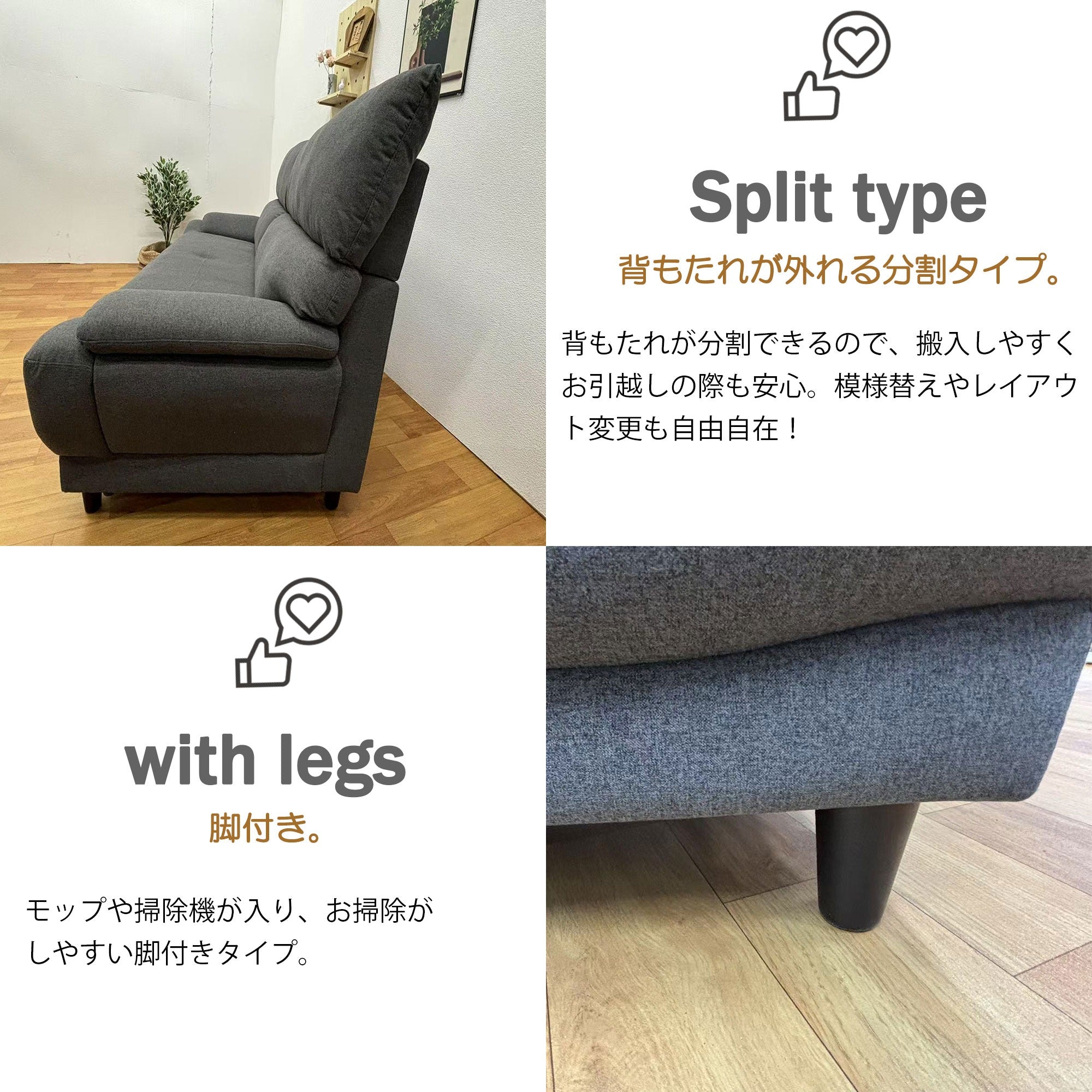 ・背もたれ/脚の取り付けあり。