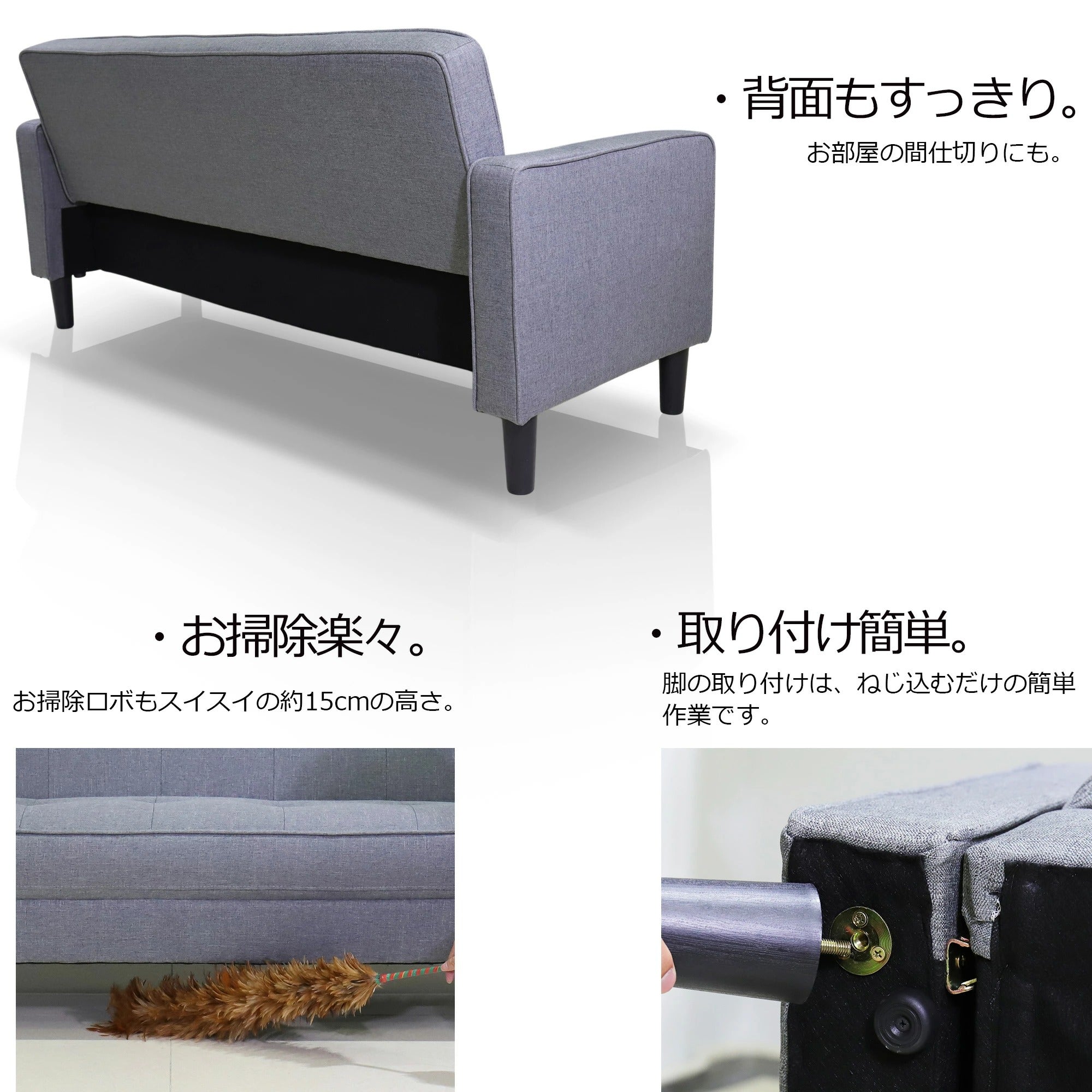 ※脚と肘掛けは、納品時にソファー本体座面裏側に格納されております。(マジックテープをはがしてご開封ください。)