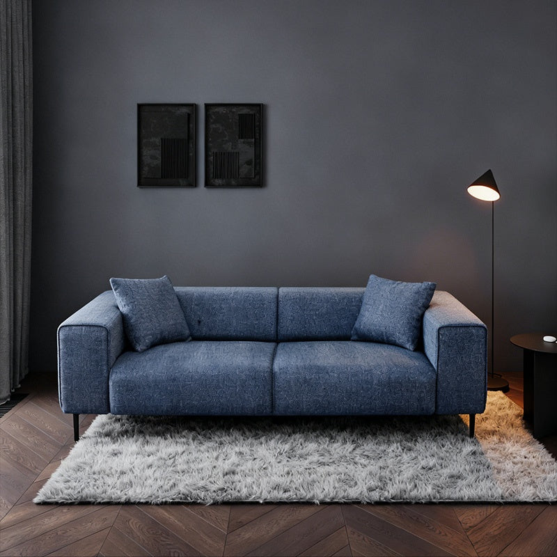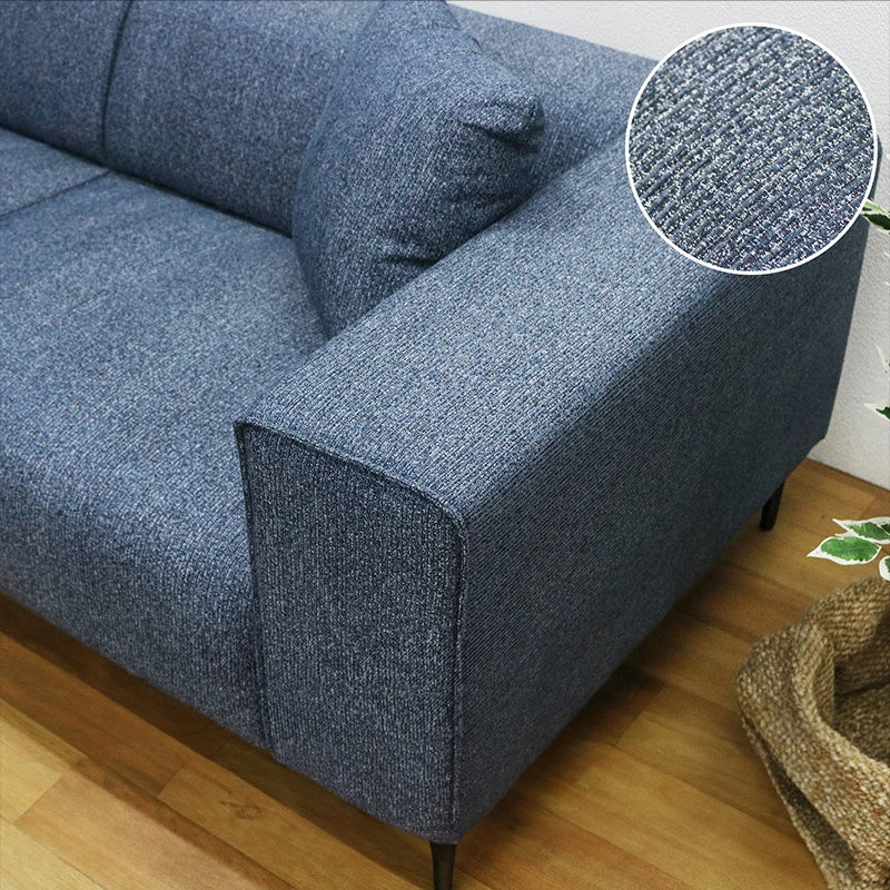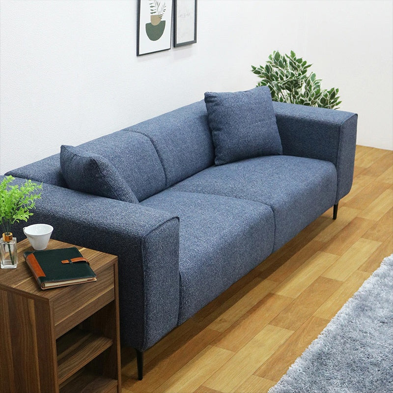 ソファ ソファー 幅196cm 3人掛け クッション付き 北欧 ファブリック 布 ブルーグレー 脚付き スチール