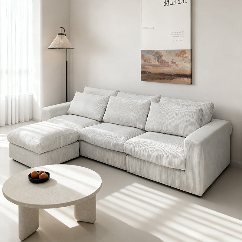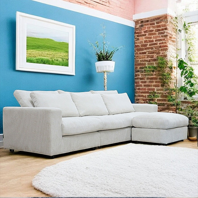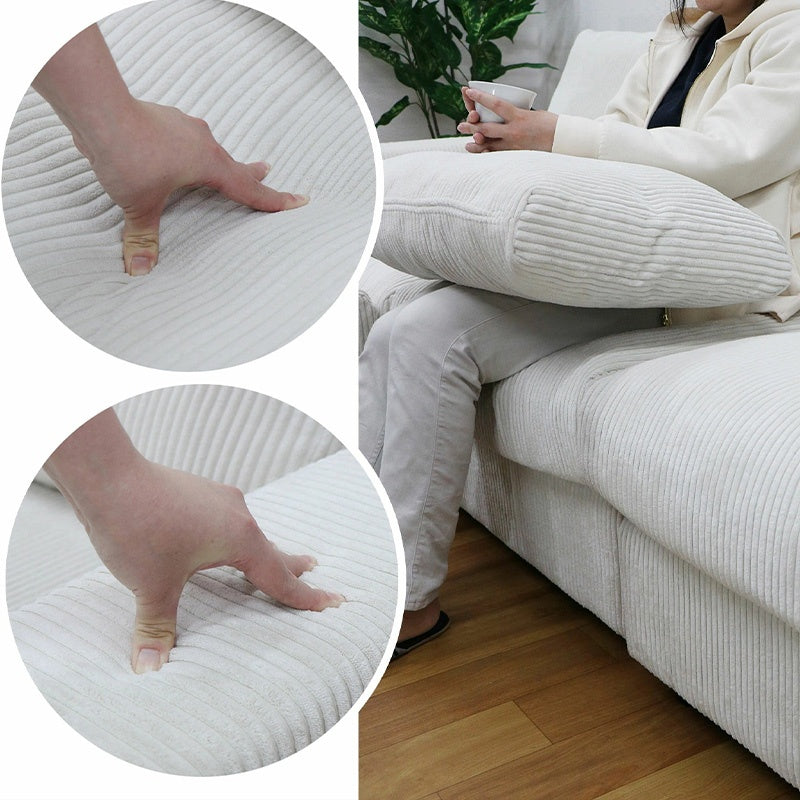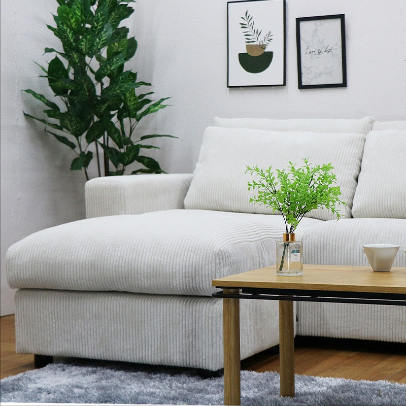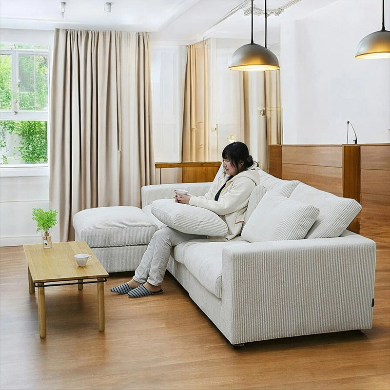 ソファ カウチソファー 大型 幅260cm 大きめ 北欧 おしゃれ ファブリック 布 3人掛け 4人掛け スツール付き シェーズロング l字ソファー クッション付き おすすめ アイボリー コーデュロイ