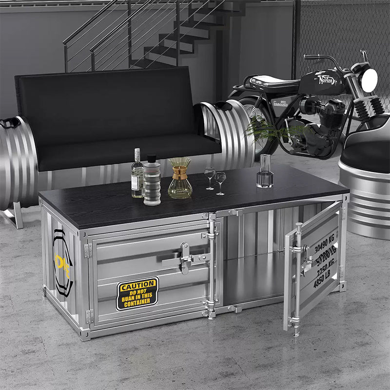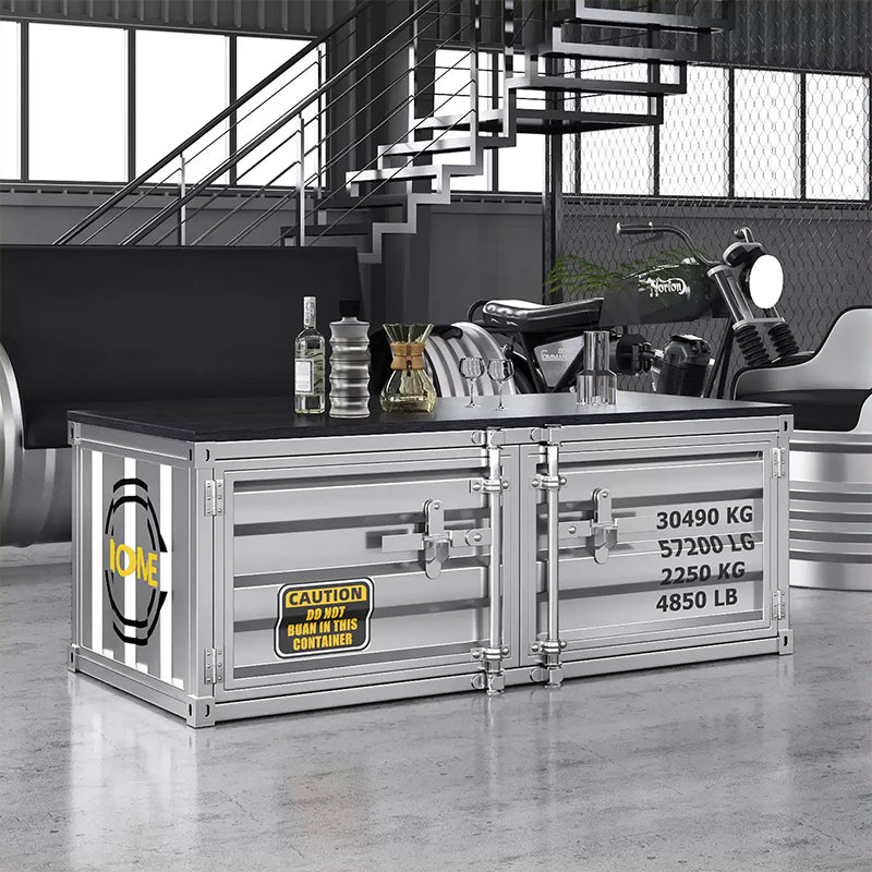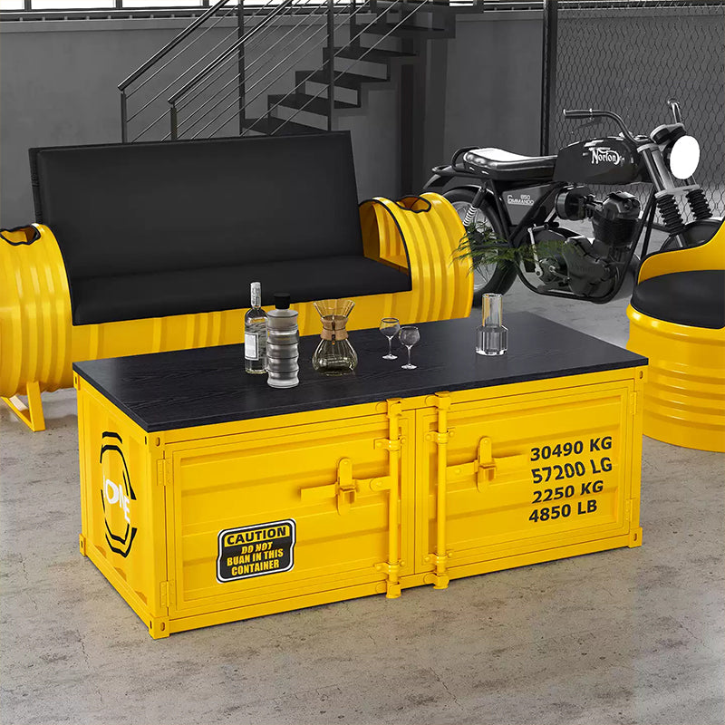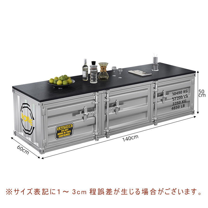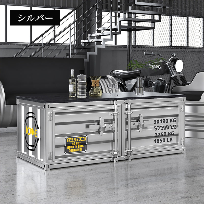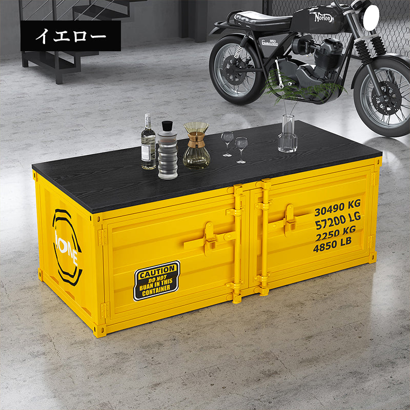スチール製 収納ローボード ローテーブル インダストリアル コンテナ風 デザイン 収納キャビネット ロータイプ 多目的収納 オフィス イエロー シルバー 幅100cm/140cm おしゃれ