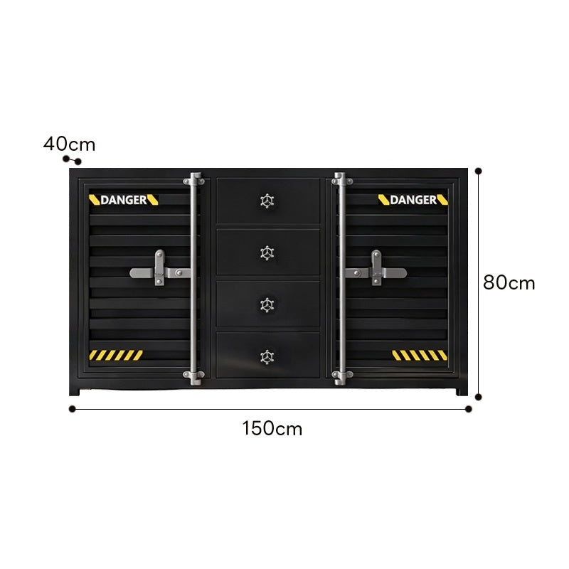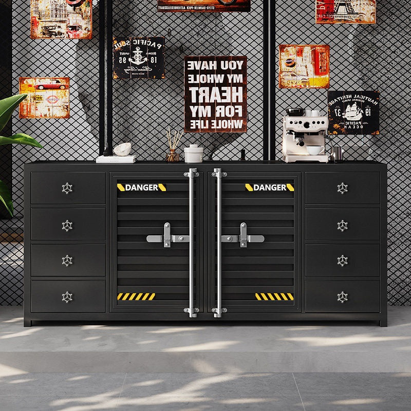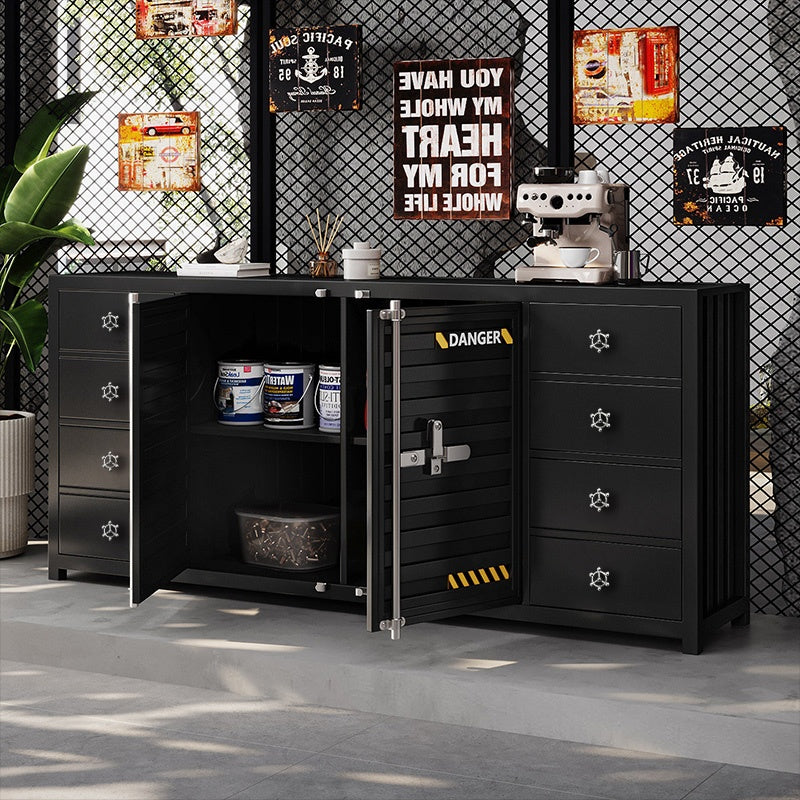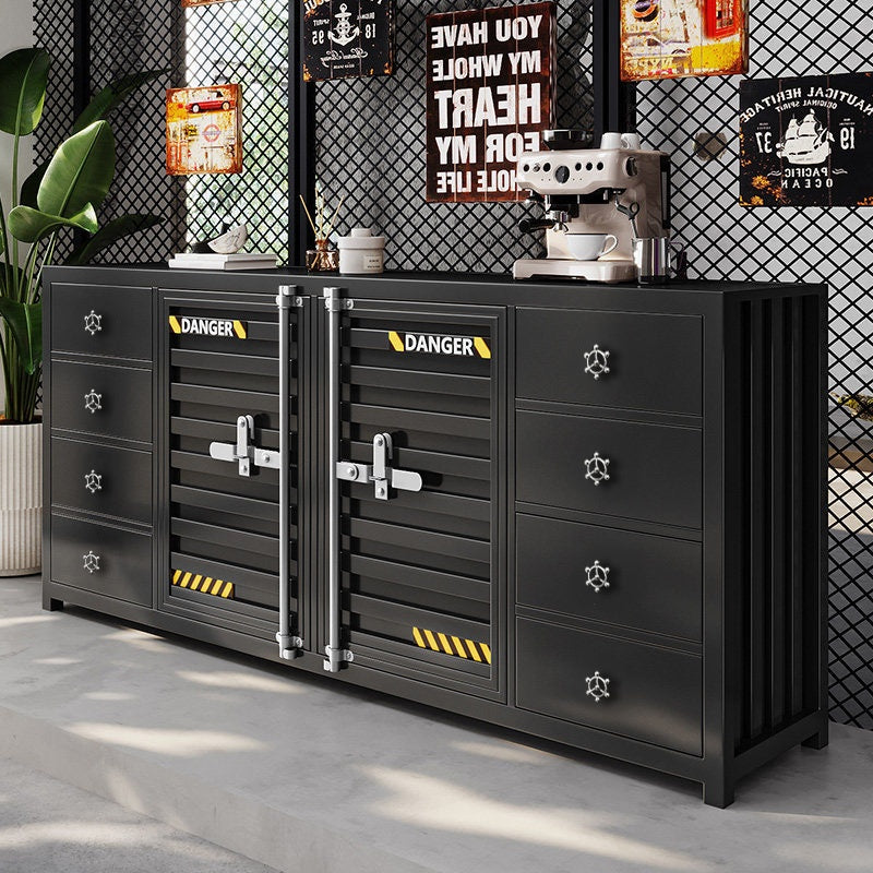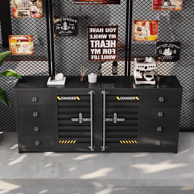 カウンターキャビネット スチール製 インダストリアルデザイン コンテナ風 収納キャビネット バーカウンター サイドボード カフェ 店舗用 幅80cm/120cm ブラック おしゃれ