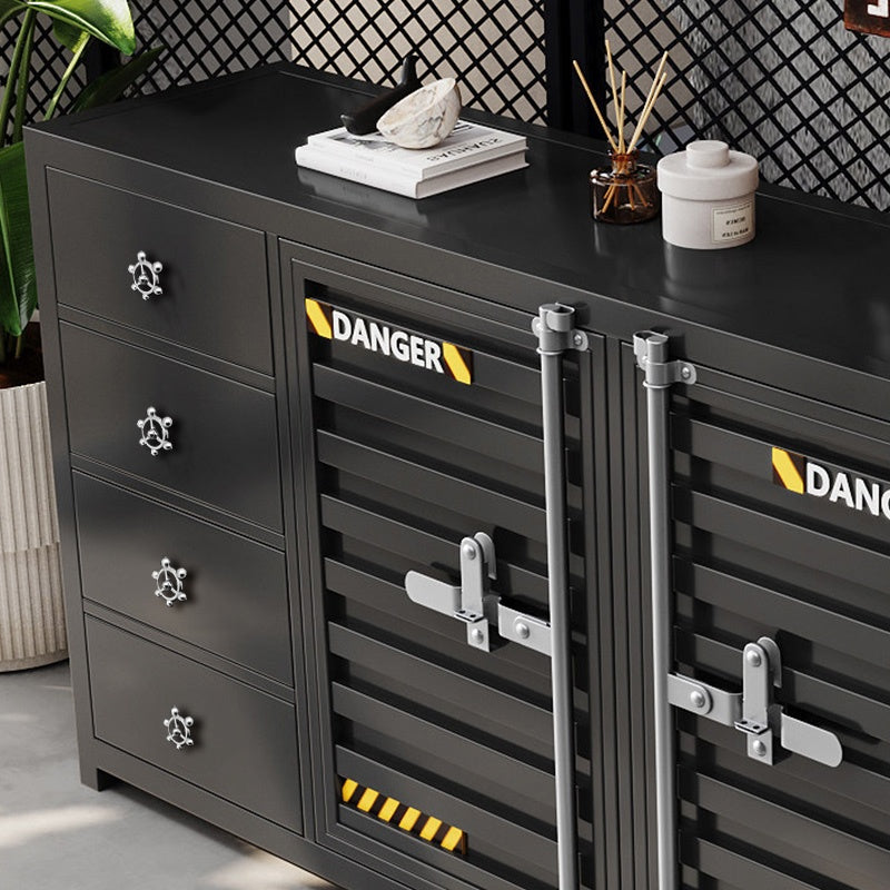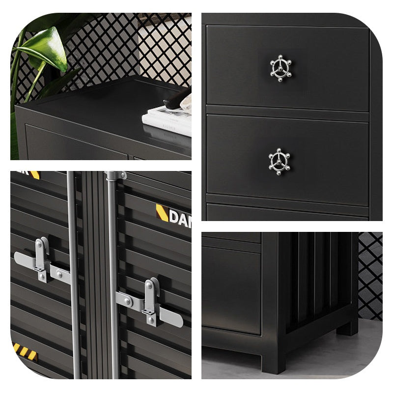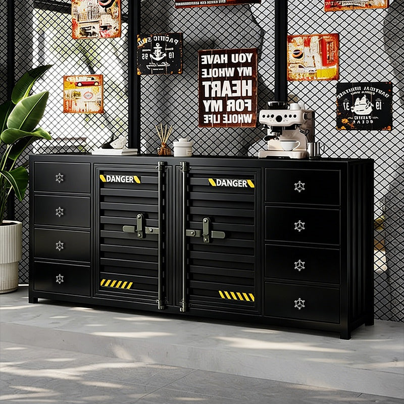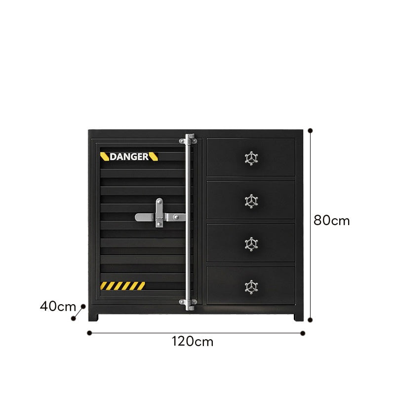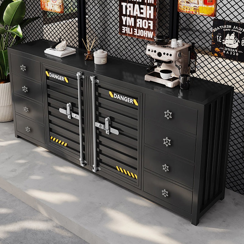 カウンターキャビネット スチール製 インダストリアルデザイン コンテナ風 収納キャビネット バーカウンター サイドボード カフェ 店舗用 幅80cm/120cm ブラック おしゃれ