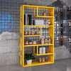 スチール製 ディスプレイラック インダストリアルデザイン オープンシェルフ 多段収納 フロアタイプ 見せる収納 玄関 リビング ショップ風 シルバー/イエロー 幅120cm