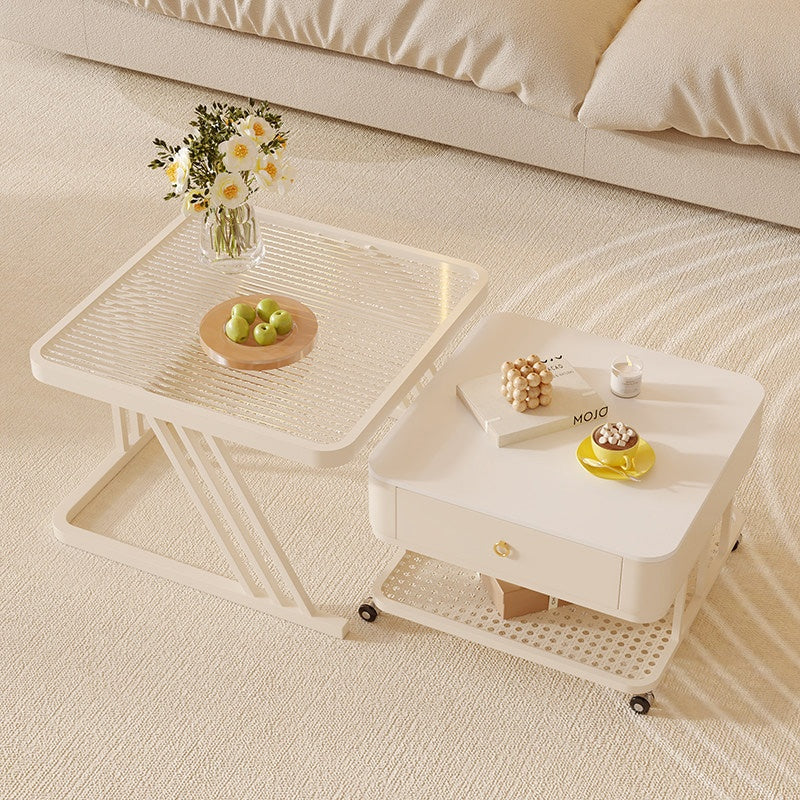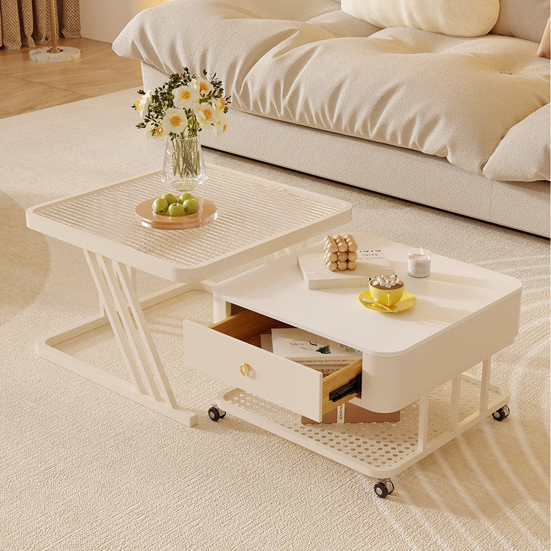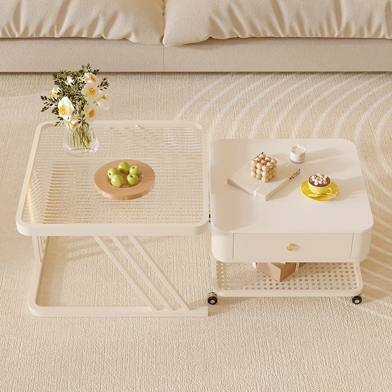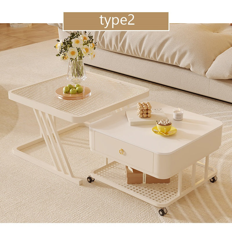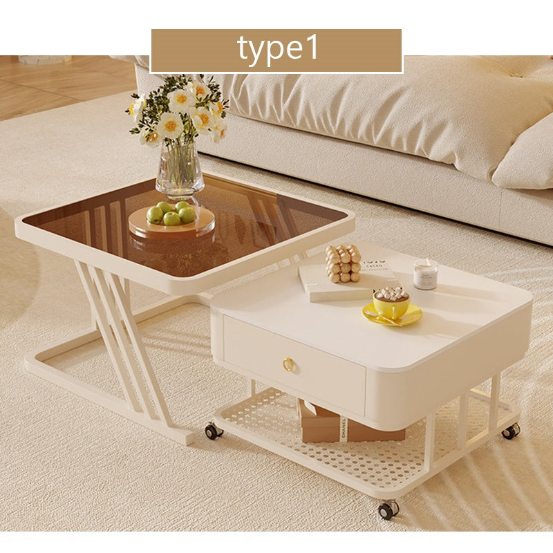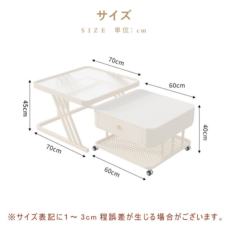 セラミック天板 ローテーブル 幅60+幅50 スチール製 リビングテーブル かわいい 小型 白 ホワイト ベージュ モダン デザイン おしゃれ センターテーブル コーヒーテーブル サイドテーブル ローテーブル 座卓 収納付 引き出し付き