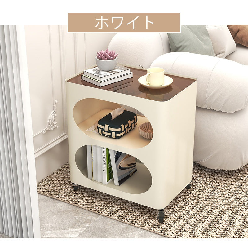 スチール サイドテーブル ローテーブル 可移動ワゴン 収納ラック ソファ横テーブル ミニテーブル 置物ラック 小型ワゴン 白 ホワイト 黒 ブラック おしゃれ 高級感 省スペース