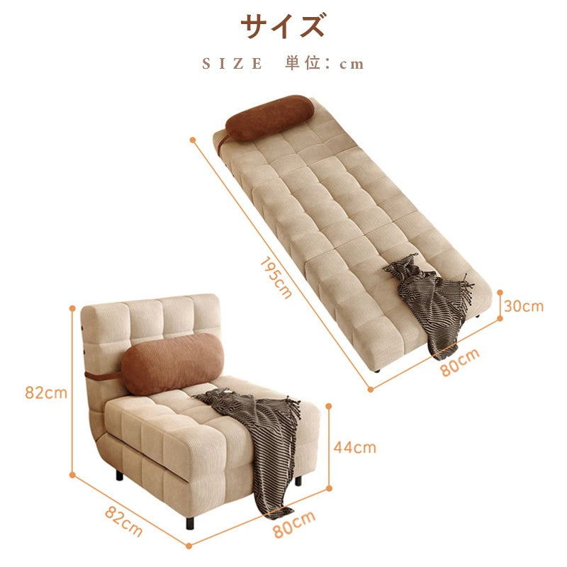 ■POINT1 1台2役の多機能ソファベッド 座ってくつろぐソファとして、引き出すだけでシングルベッドに早変わり。限られた空間を有効に使える便利なデザインです。 ■POINT2 引き出し式で簡単にベッド展開 座面下を引くだけでスムーズに展開可能。来客時や仮眠の際にも手間いらずで、すぐに快適な寝心地を確保できます。 ■POINT3 やわらかなコーデュロイ生地を採用 肌ざわりの良いコーデュロイ生地(ポリエステル)は、季節を問わず快適。高級感のある質感でお部屋を温かく演出します。 ■POINT4 高密度ウレタンフォームでしっかり快適 中材には高密度ウレタンフォームを使用。座る時も寝る時もほどよい弾力があり、長時間の使用でも型崩れしにくい構造です。 ■POINT5 炭素鋼フレームで安定感抜群 内部には丈夫な炭素鋼フレームを採用。しっかりとした構造で、使用中のぐらつきを抑え、安心してくつろげます。 ■POINT6 選べる2サイズ展開:幅80cm/幅100cm お部屋の広さや用途に合わせて選べる2サイズ。ワンルームからゲストルームまで、さまざまな空間にフィットします。 ■POINT7 快適な背もたれと丸みのあるデザイン 背もたれにはしっかりしたクッション性があり、自然な姿勢をサポート。角を落とした丸みデザインで安全性にも配慮しています。 ■POINT8 来客用ベッドとしても大活躍 急な来客や友人の宿泊にも対応。引き出すだけでベッドに変わるので、限られたスペースでも安心しておもてなしできます。 ■POINT9 5年保証付きで安心の品質 長期使用にも耐える高品質な製品で、5年間の保証が付いており、安心してお使いいただけます。 |
