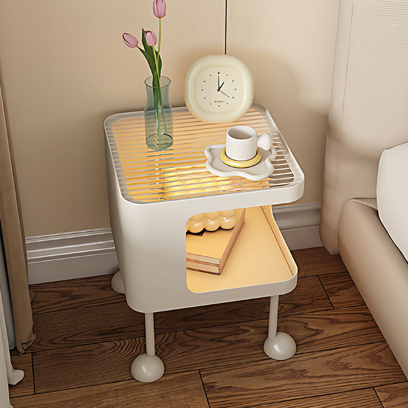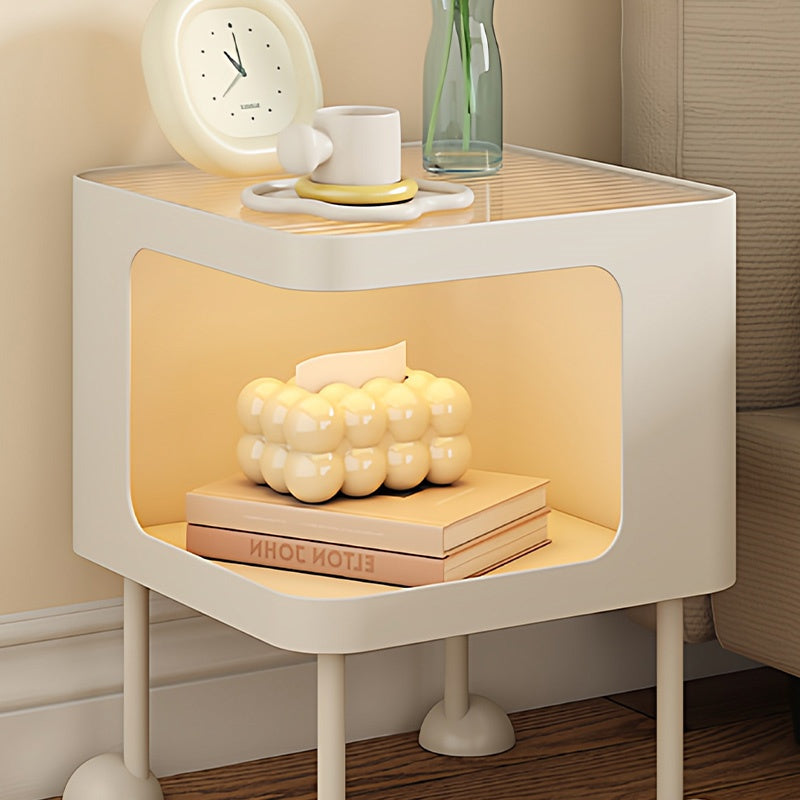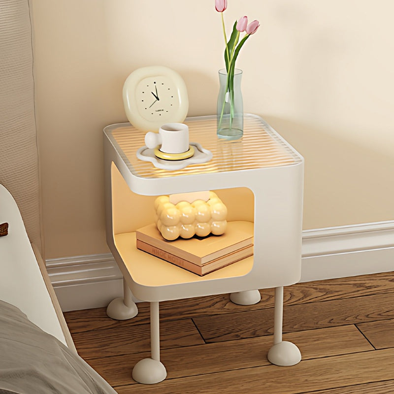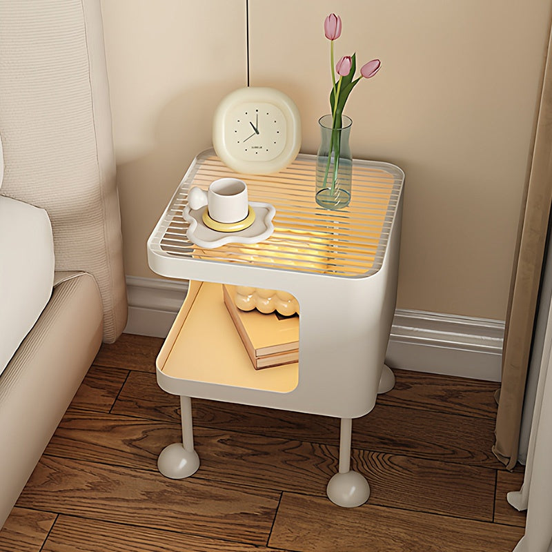 脚の取り付けが必要 金属製 ナイトテーブル スチール 幅35cm ガラス天板 ベッドサイドテーブル ソファ横テーブル 収納ラック サイドテーブル 白 ホワイト White 黒 ブラック Black 寝室向け シンプル モダン 省スペース 小型 家具
