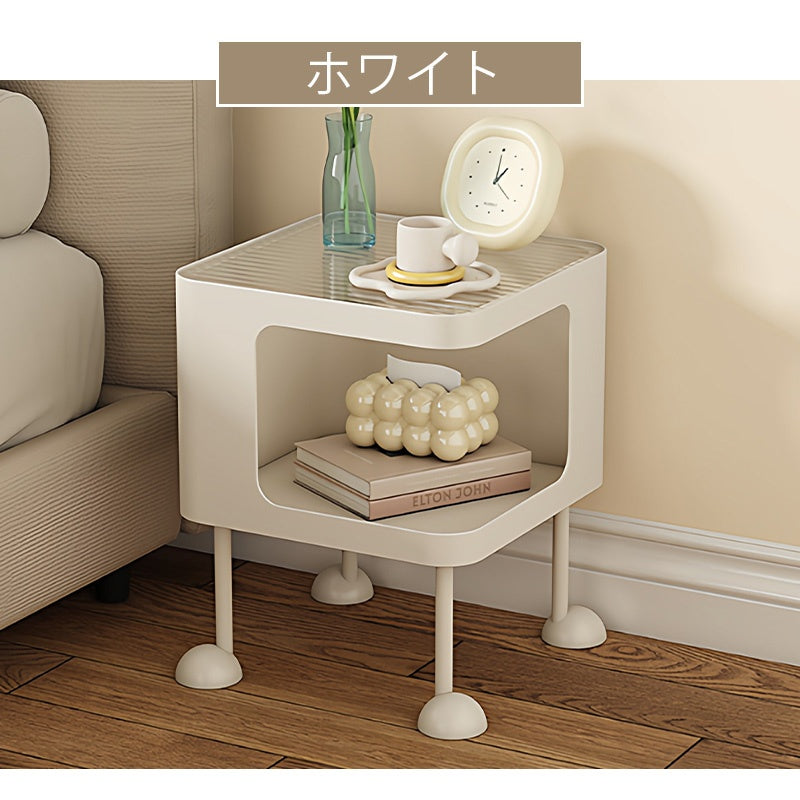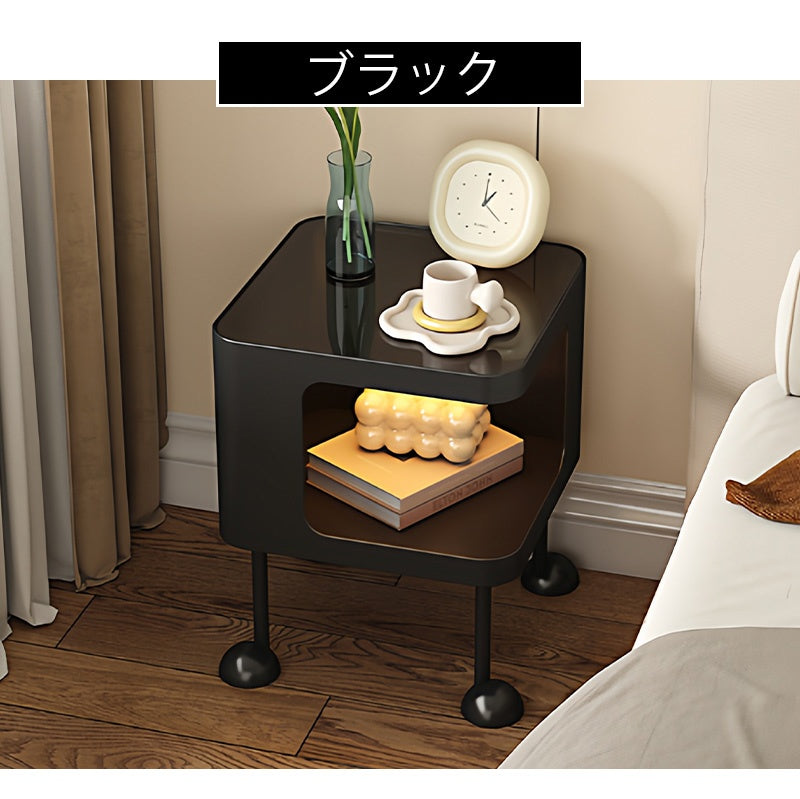 脚の取り付けが必要 金属製 ナイトテーブル スチール 幅35cm ガラス天板 ベッドサイドテーブル ソファ横テーブル 収納ラック サイドテーブル 白 ホワイト White 黒 ブラック Black 寝室向け シンプル モダン 省スペース 小型 家具