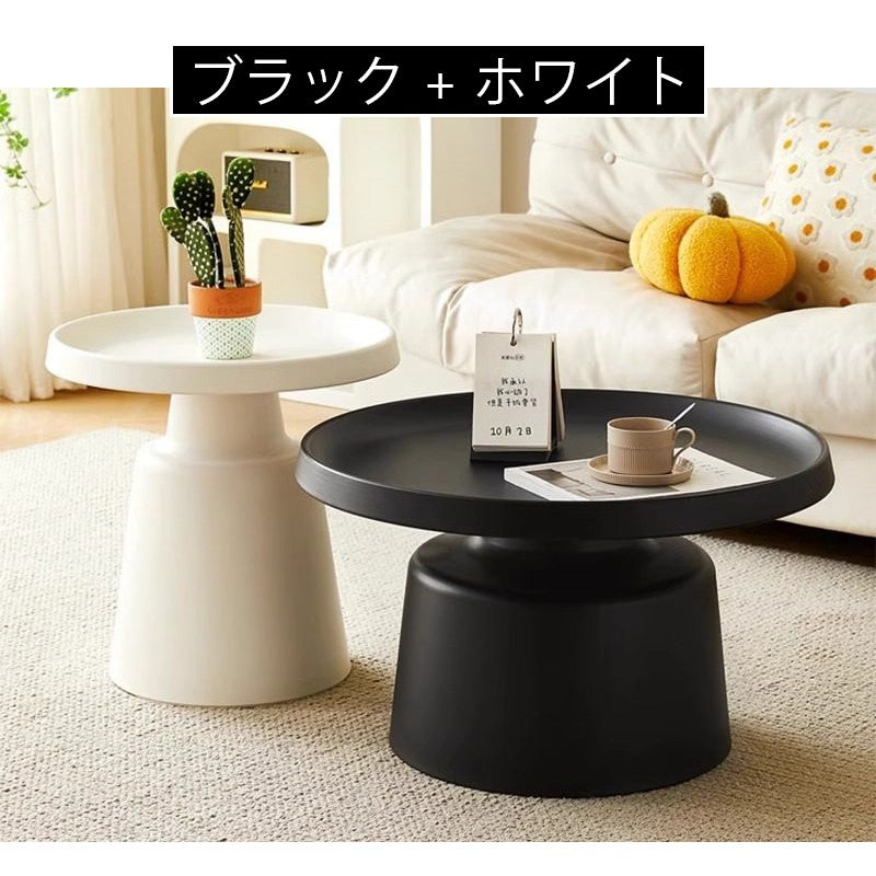 金属製 ローテーブル 白 丸 スチール 北欧 2個セット テーブル おしゃれ 丸テーブル リビングテーブル ちゃぶ台 70cm 丸型 円卓 かわいい センターテーブル 円 机 ホワイト 韓国 一人暮らし サイドテーブル ベッドサイド ホワイト+ブラック デザイン シンプル