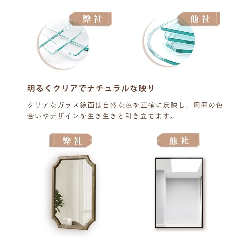 商品名 壁掛けミラー 商品番号 lyuan-cyj-001 生産国 中国 組立状態 完成品(壁掛け設置方法を同梱発送いたします) 素材 フレーム:ポリスチレン(樹脂) ミラー:無鉛ミラー サイズ(約) ・幅47cmx高き30cm×厚さ2cm ポイント ◎2色展開で選べるインテリアコーディネート ダークブラウンとナチュラルカラー,2種類の色味からお部屋に合わせて選べます。 ◎高さ47cmのちょうど良いサイズ感 小さすぎず大きすぎない絶妙サイズで,玄関・トイレ・洗面所などに最適。 ◎飛散防止加工で万が一でも安心 鏡面は飛散防止加工がされているので万が一の時も安心♪ ◎壁掛け,スペースの節約 壁掛け全身鏡は床に置かれるのではなく,壁に取り付けられるため,床のスペースを節約できます。 特記事項 ※モニターにより実際の色と異なる場合がございます。 ※予告なくデザインや仕様変更する場合がございます。 ※予告なく在庫切れになる場合がございます。 ※製造時期により,同シリーズであってもやむなく多少の色差が発生してしまう場合がございます。ご了承ください。 ※領収書発行ご希望の場合,別途メールにてご連絡くださいませ。 ※ご購入の前に搬入経路のご確認をお願い致します。弊社ではお部屋に搬入出来ないなどのお客様ご都合による返品などはお受けできません。(不良品を除き返品交換不可となります。) ※代金引換不可の商品です。...