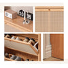 ■POINT1 天然木調の本体であたたかみある空間に ナチュラルな木目調で仕上げた本体は,インテリアに優しく溶け込み,玄関を明るく整えた印象に導きます。 ■POINT2 通気性に優れたPVCラタン調扉を採用 前扉はPVC製のラタン風パネルを使用し,湿気やニオイがこもりにくく,見た目も爽やか。毎日使いたくなる美観と機能を両立。 ■POINT3 便利なワイド天板で小物もすっきり 上部にはディスプレイスペースとして使える広々とした天板付き。鍵や時計,香りグッズなども手元に置けて便利です。 ■POINT4 目を引く円錐形メッキ取っ手がアクセントに 上品な光沢のあるゴールド調取っ手は,シンプルな外観に高級感をプラス。開閉もしやすく,見た目も実用性も◎。 ■POINT5 収納力抜群の3段フラップ式構造 奥行を取らない省スペース設計でありながら,3段の大容量収納を実現。家族全員の靴をスマートに整理できます。 ■POINT6 奥行スリムで狭い玄関にもぴったり 壁に沿わせて置きやすいスリムタイプ。圧迫感なく収納力を確保し,限られたスペースにもスマートに収まります。 ■POINT7 使用頻度の高い靴も出し入れ簡単 前扉はフラップ式で大きく開き,靴の出し入れがスムーズ。見た目もすっきりとした印象で,使い勝手も抜群です。 ■POINT8 5年保証付きで安心の品質 長期使用にも耐える高品質な製品で,5年間の保証が付いており,安心してお使いいただけます。 |