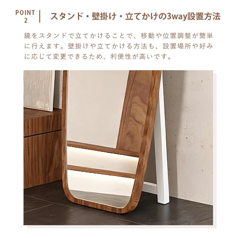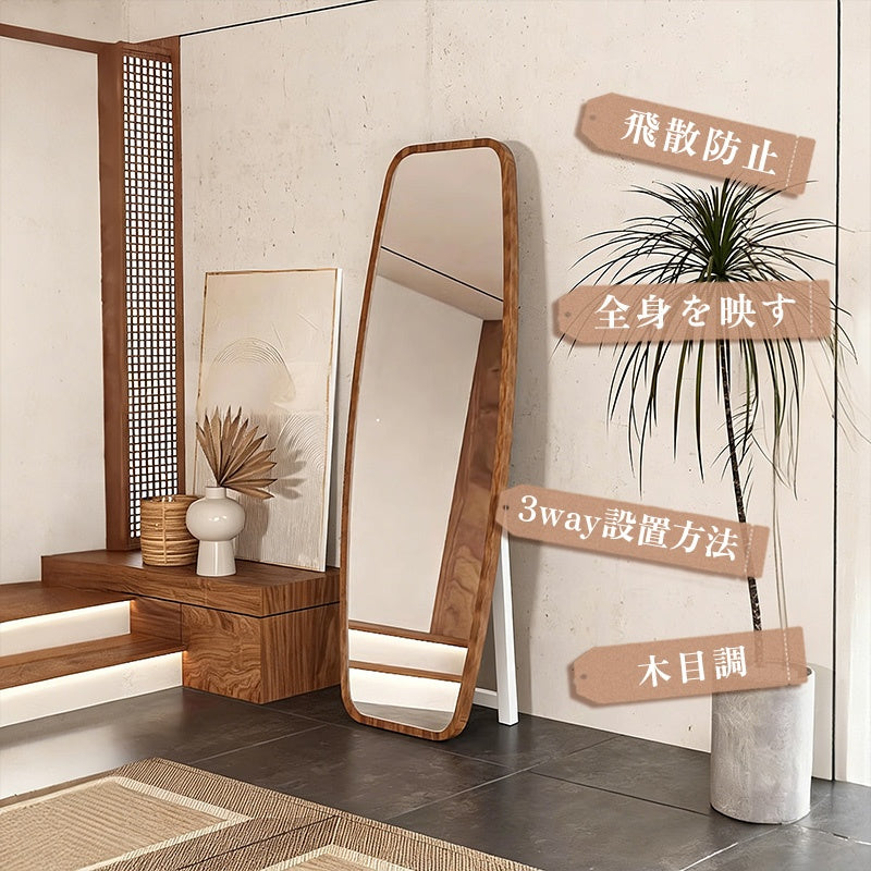 全身鏡・スタンドミラー・壁掛け・姿見・ナチュラル・リビング・ベッドルーム・1人暮らし