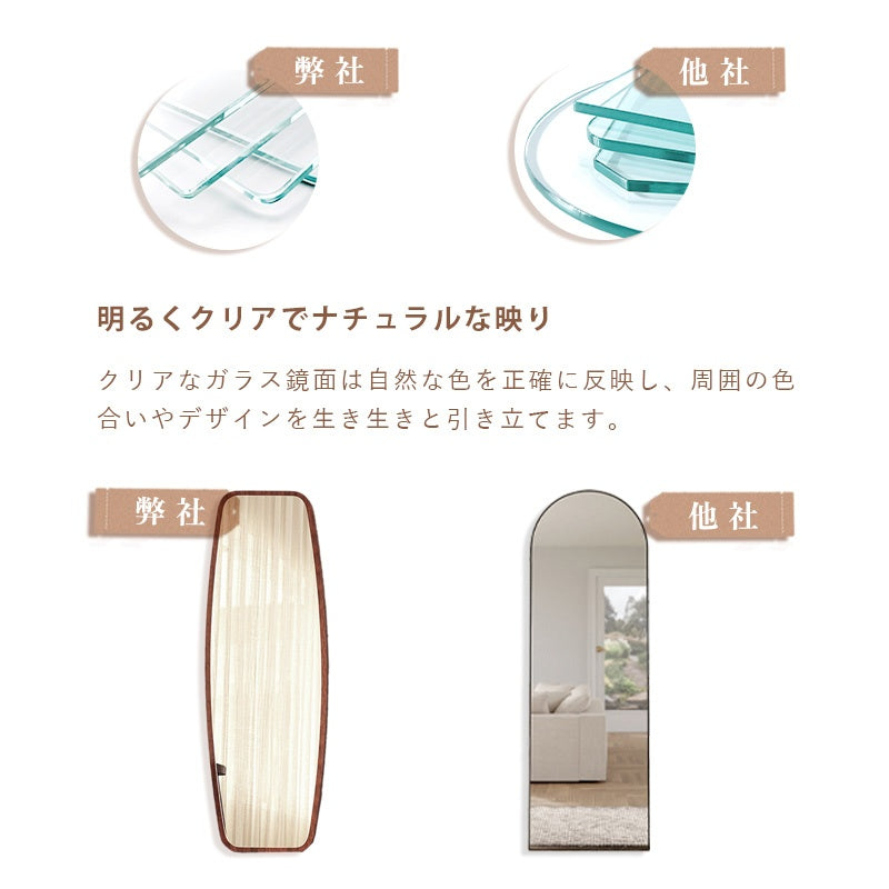 | ポイント | ◎全身が映る使いやすいサイズなのでお部屋や玄関に置いて毎日の 身だしなみチェックに最適!シンプルで飽きのこないデザインです。 ◎鏡面は飛散防止加工がされているので万が一の時も安心♪ ◎木目の風合いを活かした塗装が施されておりアンティークな雰囲気を感じられる仕上がりになっています。 |