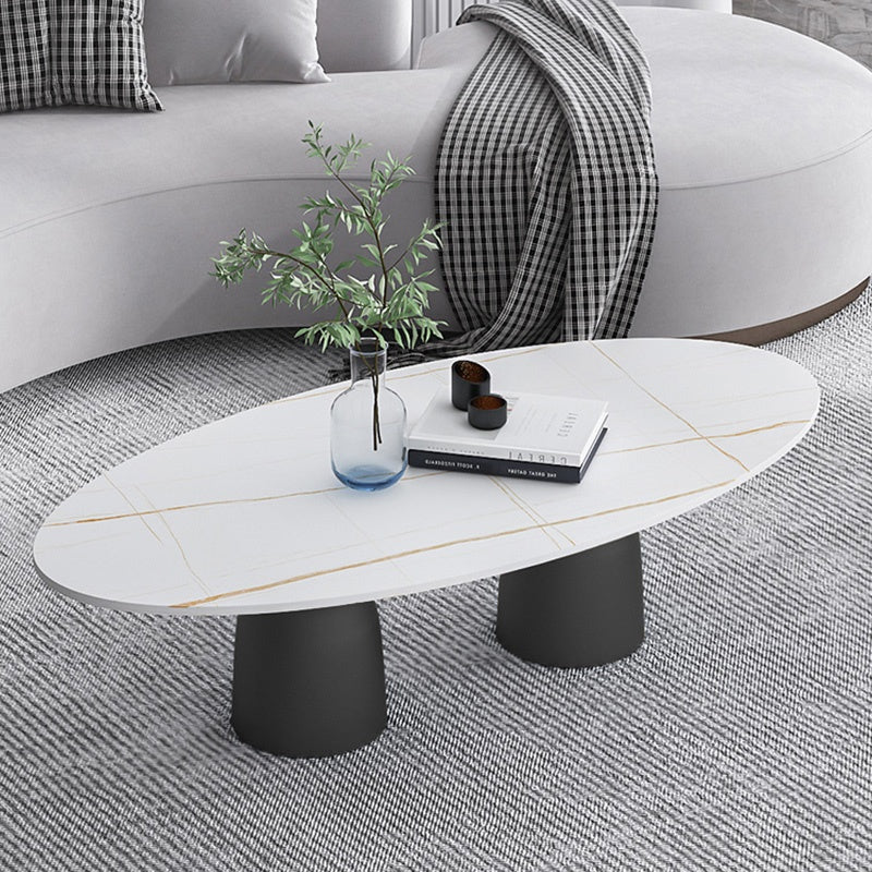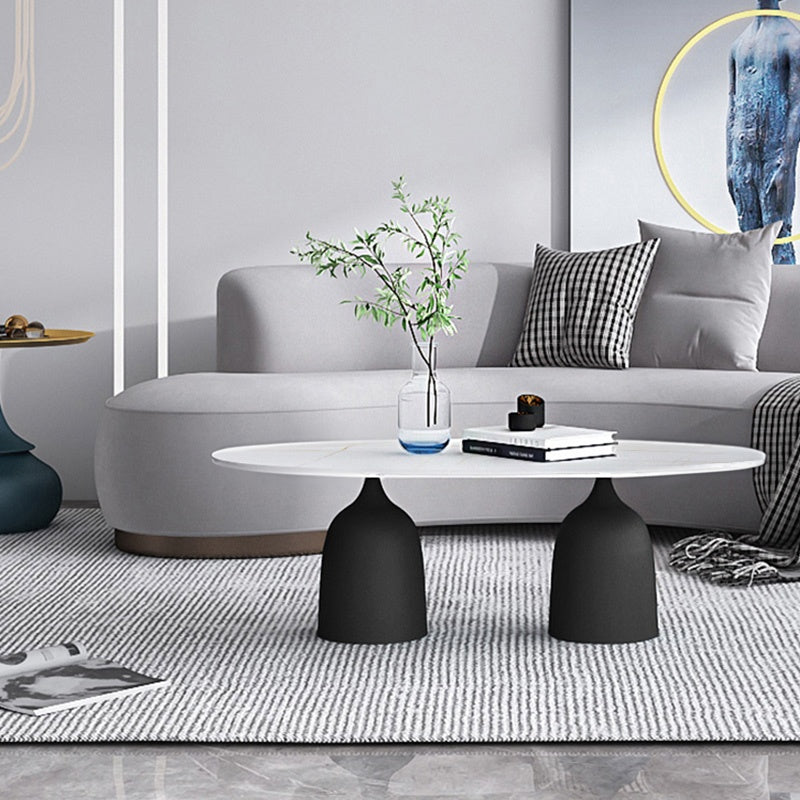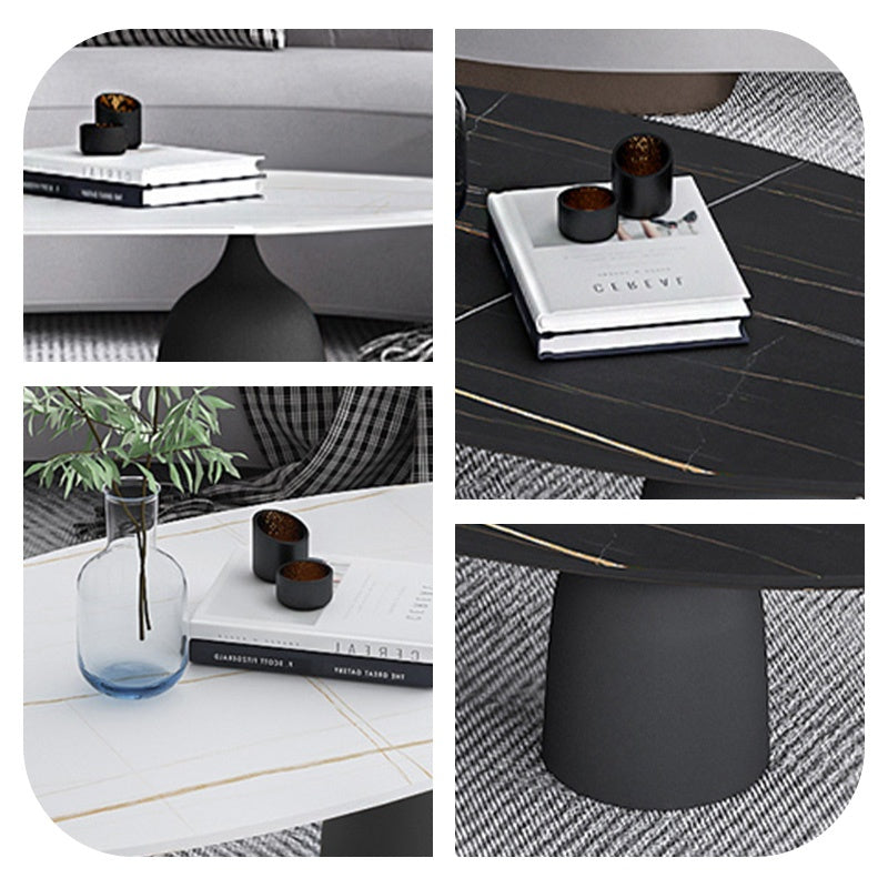 リビングテーブル セラミック調天板 幅120cm 楕円形 ローテーブル リビング向け シンプルモダン 北欧風 デザイン ソファ前テーブル ホワイト/ブラック 大理石風 おしゃれ