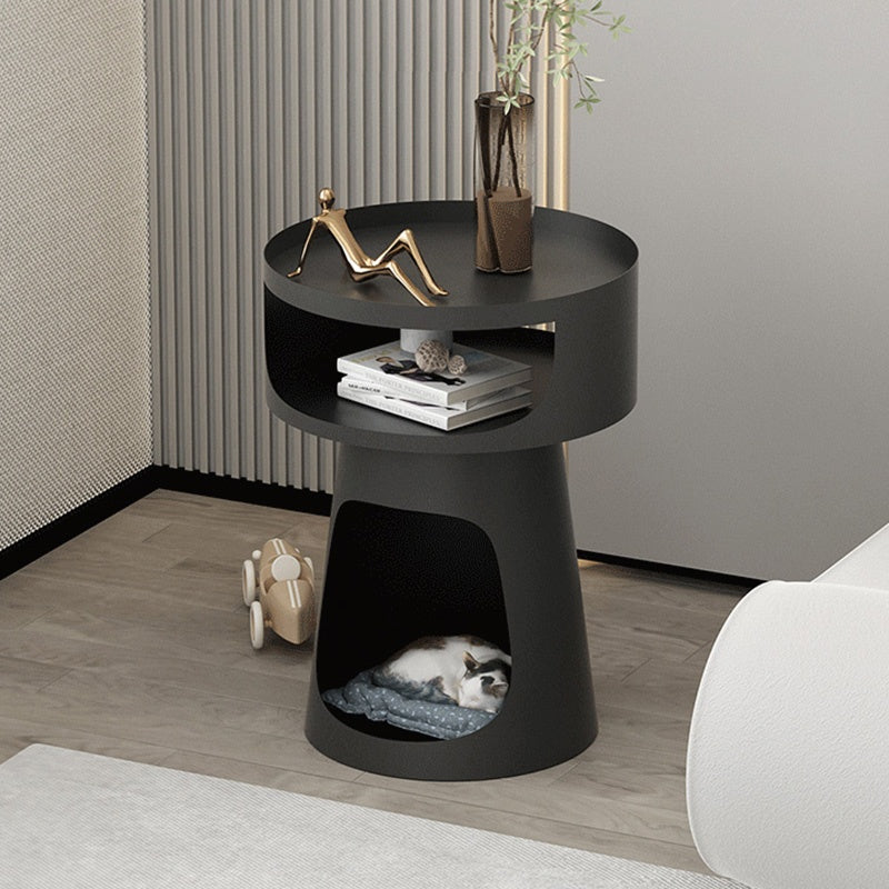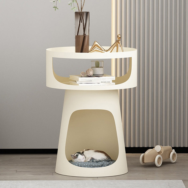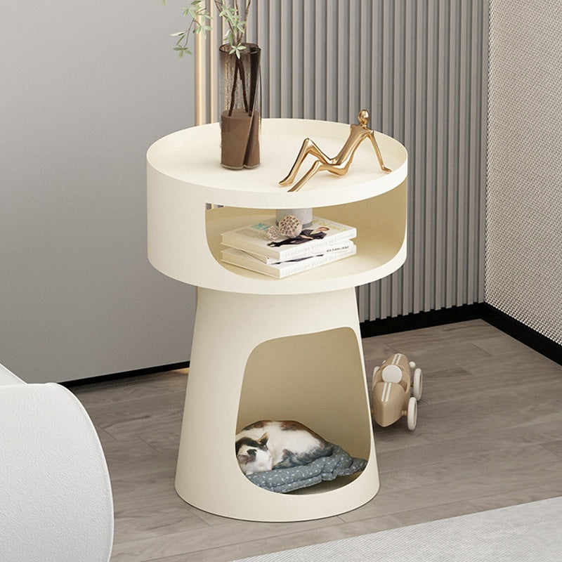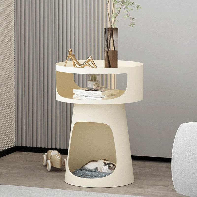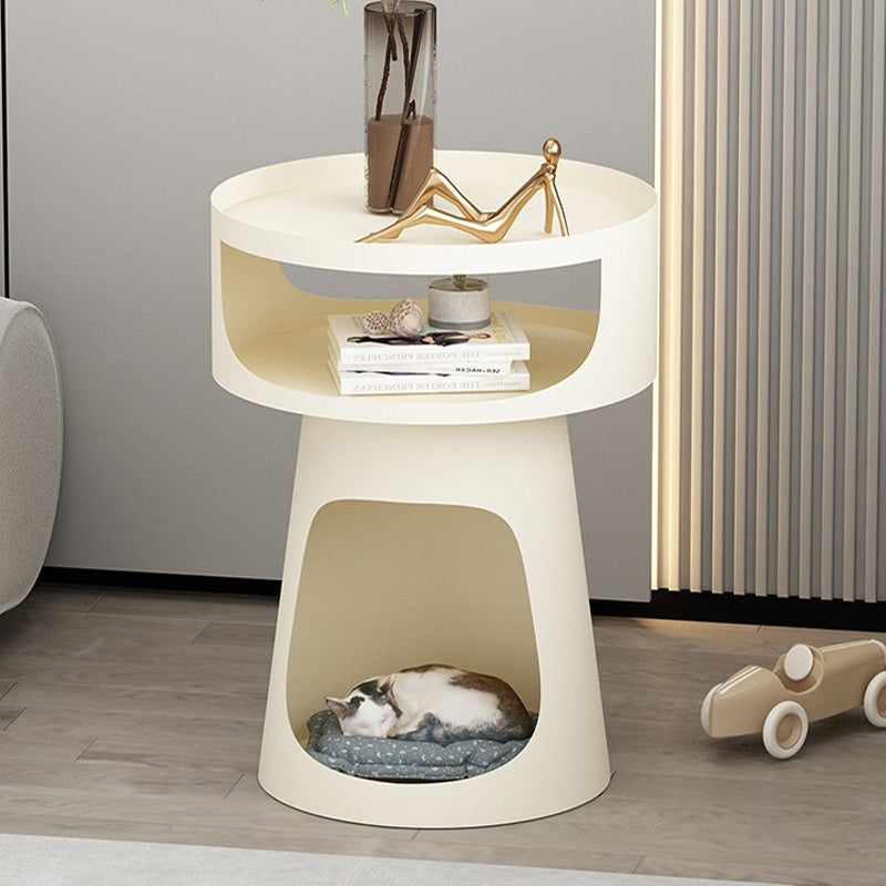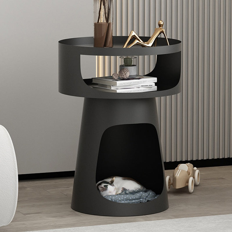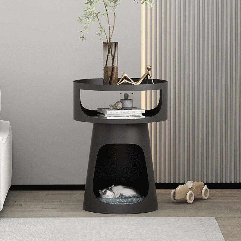 サイドテーブル 炭素鋼 幅40cm 猫スペース付き 2段収納 ソファ横テーブル ベッドサイド デザイン モダンインテリア ベージュ/ブラック 猫用ベッド兼用 サイドキャビネット おしゃれ シンプル 高級感