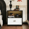 スチール製 ベッドサイドテーブル 収納付き レトロ風 小型 サイドキャビネット 引き出し1段 寝室用 ホワイト 木目調 北欧風 ミニキャビネット コンパクト 省スペース ナイトテーブル 家具