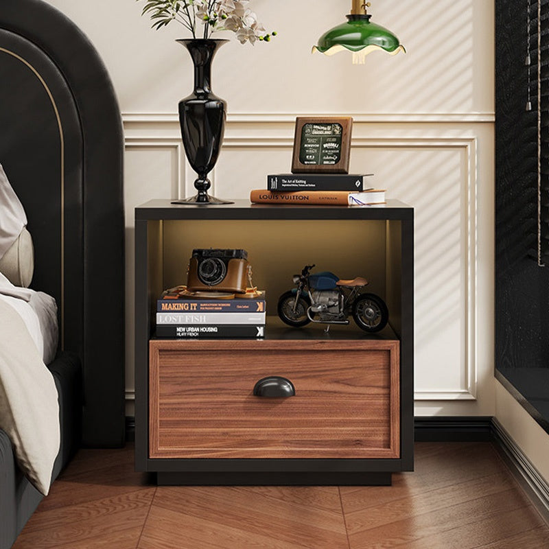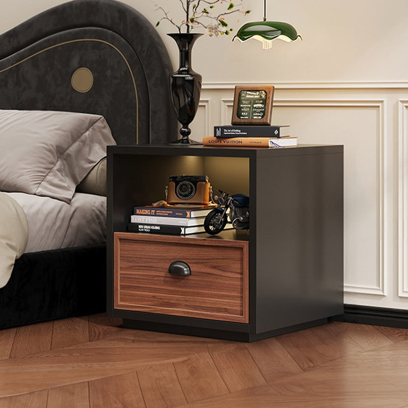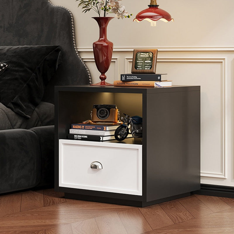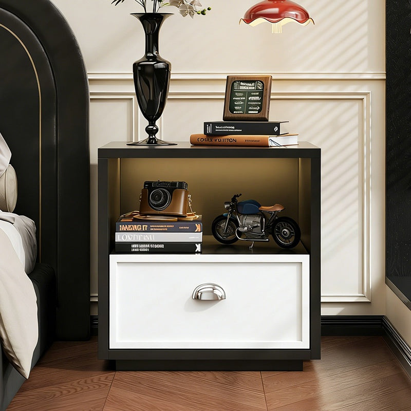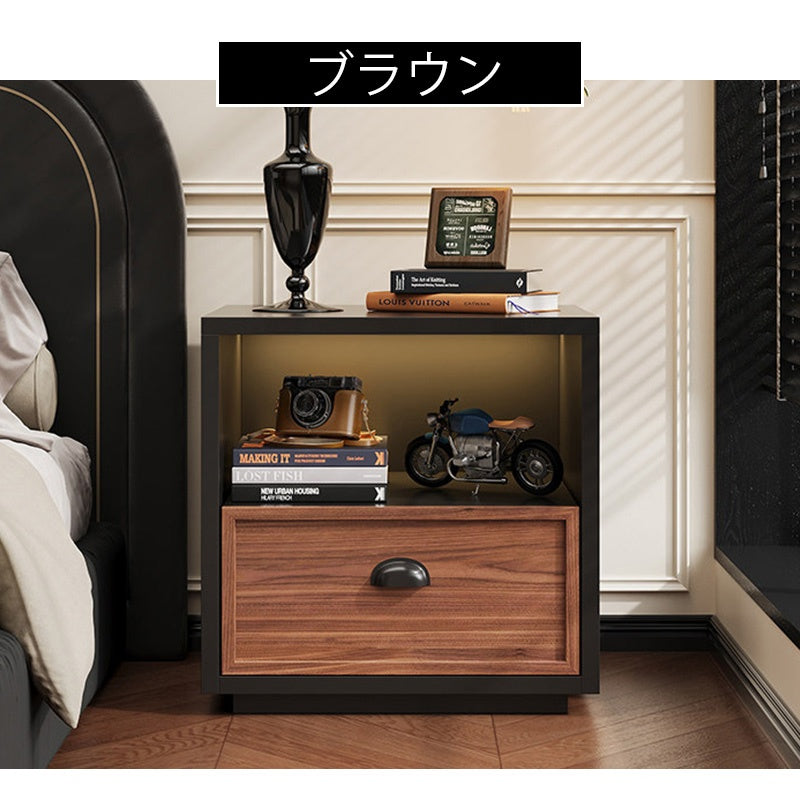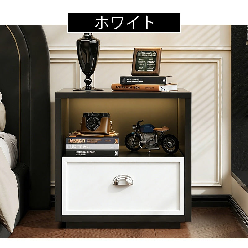スチール製 ベッドサイドテーブル 収納付き レトロ風 小型 サイドキャビネット 引き出し1段 寝室用 ホワイト 木目調 北欧風 ミニキャビネット コンパクト 省スペース ナイトテーブル 家具