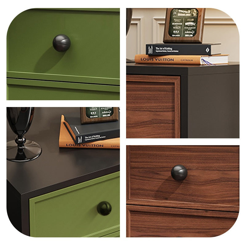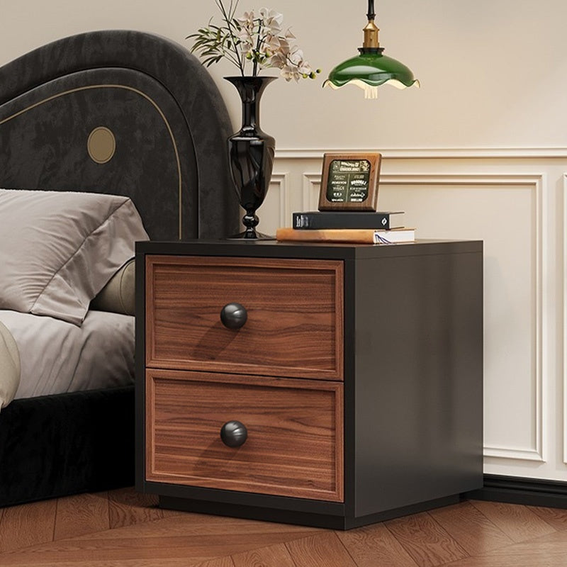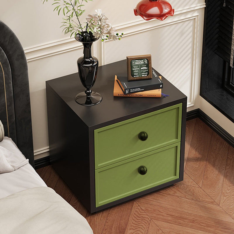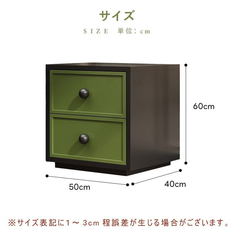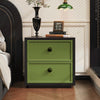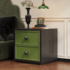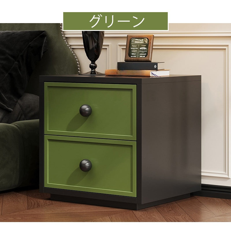 スチール製 ベッドサイドテーブル レトロ風 2段引き出し コンパクト 省スペース 収納サイドキャビネット 寝室用 木目調 グリーン 小型 ナイトテーブル 家具 ミニキャビネット