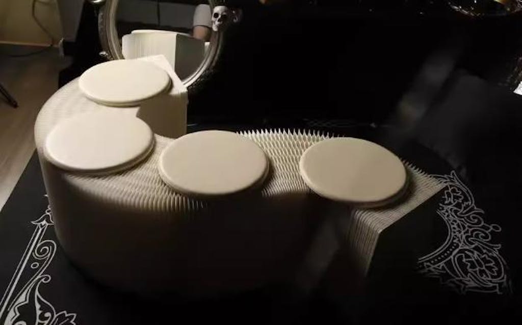伸縮式ペーパーベンチ・幅120~250cm・折りたたみ可能・軽量設計・コンパクト収納・スタイリッシュデザイン・紙素材使用・ホワイト/ブラウン