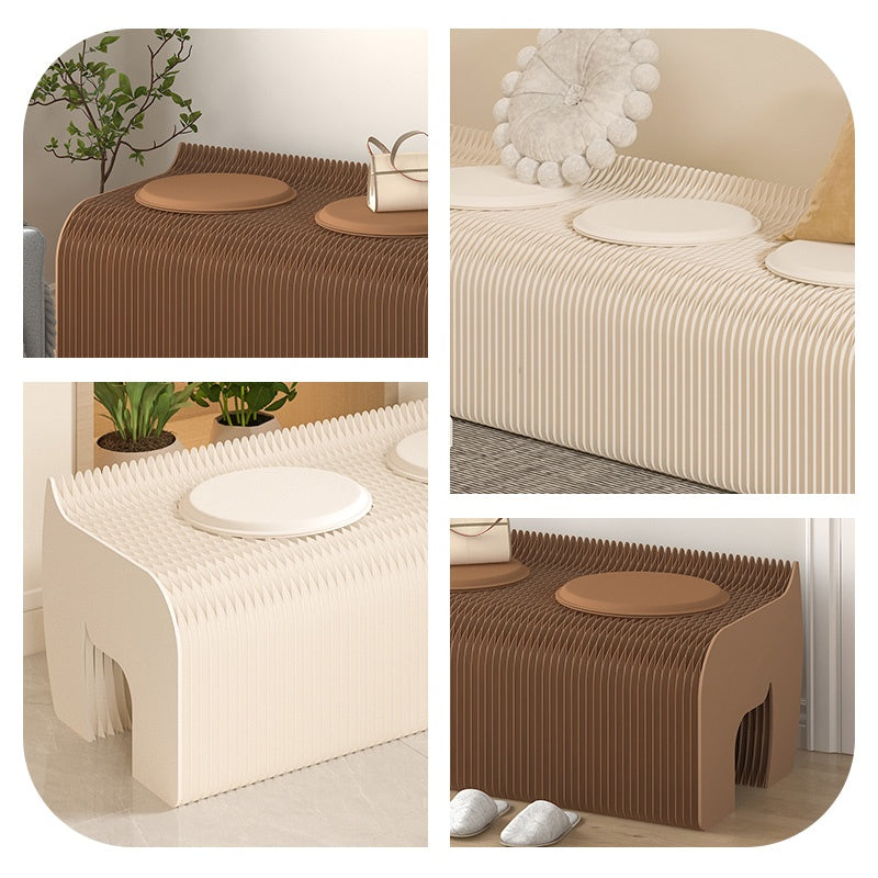 商品名 伸縮式ペーパーベンチ 商品番号 sswuyu-chair-005 生産国 中国 組立状態 完成品 素材 ペーパー サイズ(約) ・幅200x奥行39x高さ30cm ・幅300x奥行39x高さ30cm カラー ・ブラウン ・ホワイト ポイント ◆商品説明 ■POINT1 環境にやさしいクラフト紙を使用 本体には再生可能なクラフト紙を使用。地球環境に配慮したエコ素材です。 ■POINT2 強度と柔軟性を兼ね備えた紙構造 ハニカム構造により、紙とは思えない高い耐久性と座り心地を実現しています。 ■POINT3 曲線デザインで空間にアクセントをプラス 半円状に広がる独特のフォルムが、空間にやさしいリズムとモダンな雰囲気をもたらします。 ■POINT4 専用クッション付きで座り心地アップ 座面には取り外し可能なラウンドクッションを備え、快適性にも配慮しています。 ■POINT5 軽量で持ち運びも簡単 紙製だからこその軽さで、移動や配置替えもラクラク。イベントや来客時にも便利です。 ■POINT6 組み立て不要・そのまま使える設計 面倒な工具や組み立て作業は一切不要。届いてすぐに使用可能です。...
