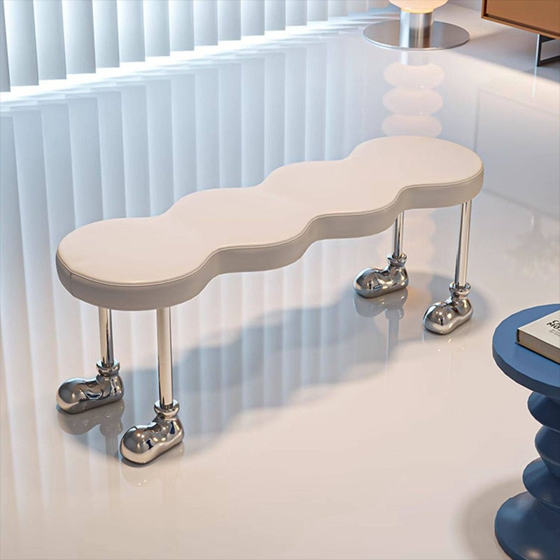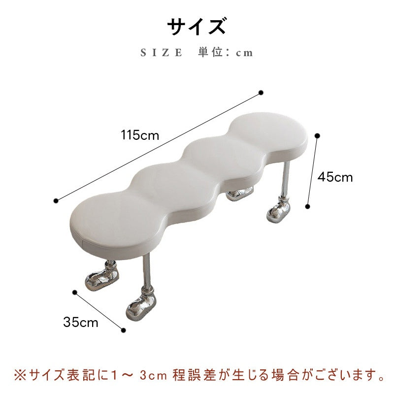 PUレザー デザインベンチ 可愛い 長椅子 シンプル クリエイティブ 金属脚 ユニーク ホワイト 白 ブラック 黒 ダイニングチェア インテリアベンチ モダン