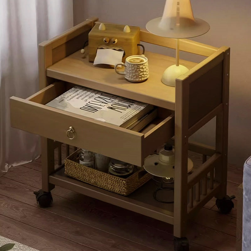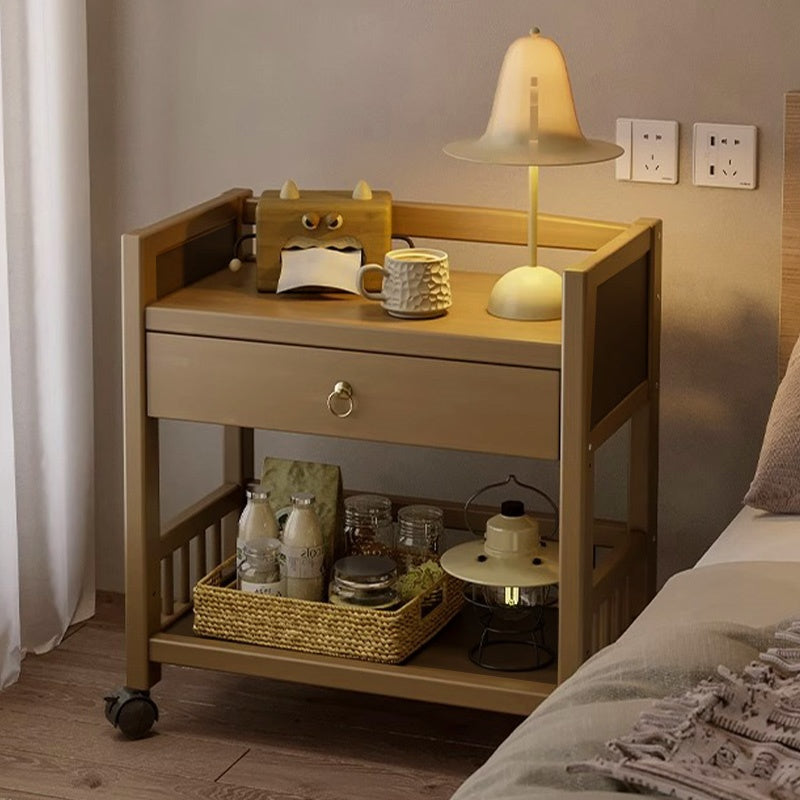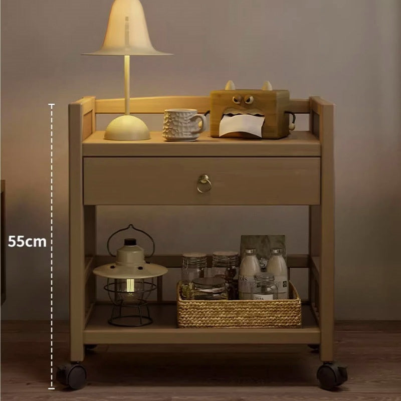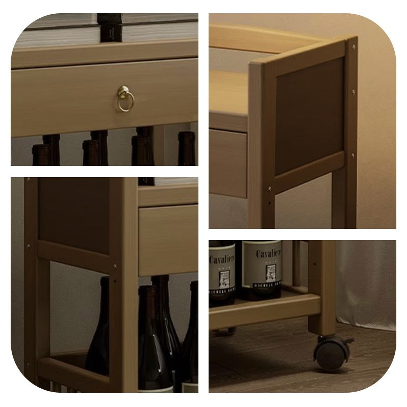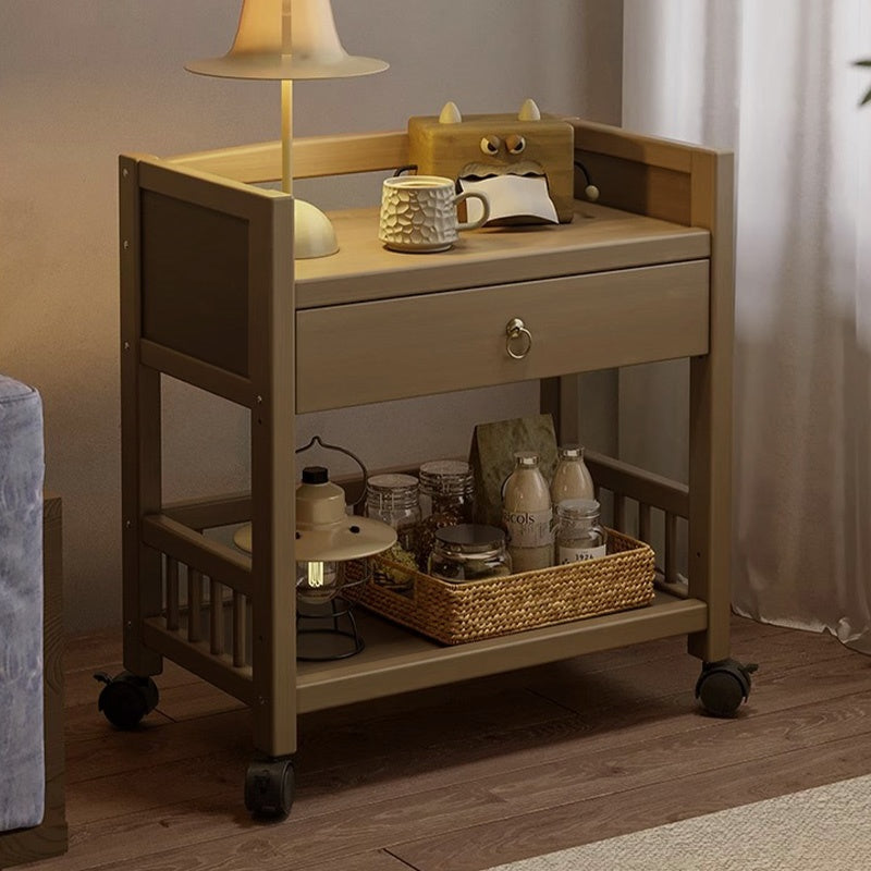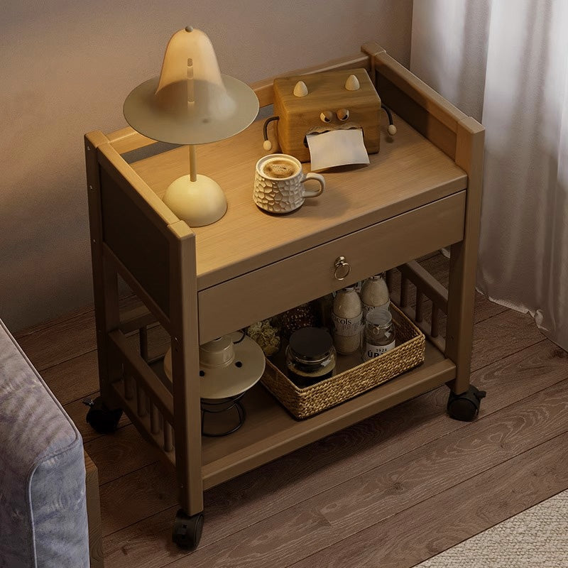 Casaconer | サイドテーブル・ナイトテーブル・サイドワゴン・竹製・収納ワゴン・キャスター付き・ミニワゴン・ウォルナットカラー・おしゃれ・ブックワゴン・キッチンワゴン・サイドテーブル・幅35cm/50cm・コンパクト収納