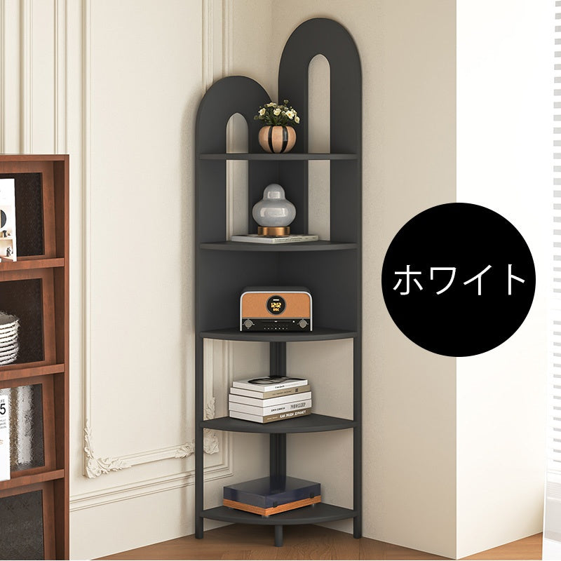 コーナーラック スチール製 フロア収納ラック 多段収納 コーナー対応 省スペース 立て置き 置物棚 書棚 リビング 玄関 ブラック ホワイト