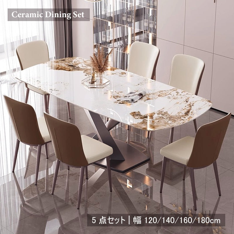 ダイニングテーブル&チェアセット・ダイニング5点セット・食卓・食事テーブル・ラグジュアリー・セラミック・ライトリュクス・上質