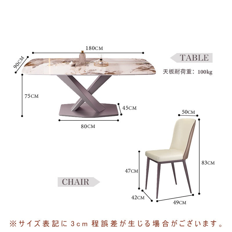 | サイズ | 商品サイズ: テーブル: ・商品サイズ:(約)幅120x奥行70x高さ75cm 梱包aサイズ:(約)幅122x奥行73x高さ8cm/重量:約45kg 梱包bサイズ:(約)幅115x奥行20x高さ78cm/重量:約7.7kg ・商品サイズ:(約)幅140x奥行80x高さ75cm 梱包aサイズ:(約)幅143x奥行82x高さ8cm/重量:約49.6kg 梱包bサイズ:(約)幅115x奥行20x高さ78cm/重量:約7.7kg ・商品サイズ:(約)幅160x奥行90x高さ75cm 梱包aサイズ:(約)幅162x奥行92x高さ8cm/重量:約53kg 梱包bサイズ:(約)幅115x奥行20x高さ78cm/重量:約7.7kg ・商品サイズ:(約)幅180x奥行90x高さ75cm 梱包aサイズ:(約)幅182x奥行92x高さ8cm/重量:約61.8kg 梱包bサイズ:(約)幅115x奥行25x高さ78cm/重量:約8kg 椅子:幅42x奥行49x高さ83cm |