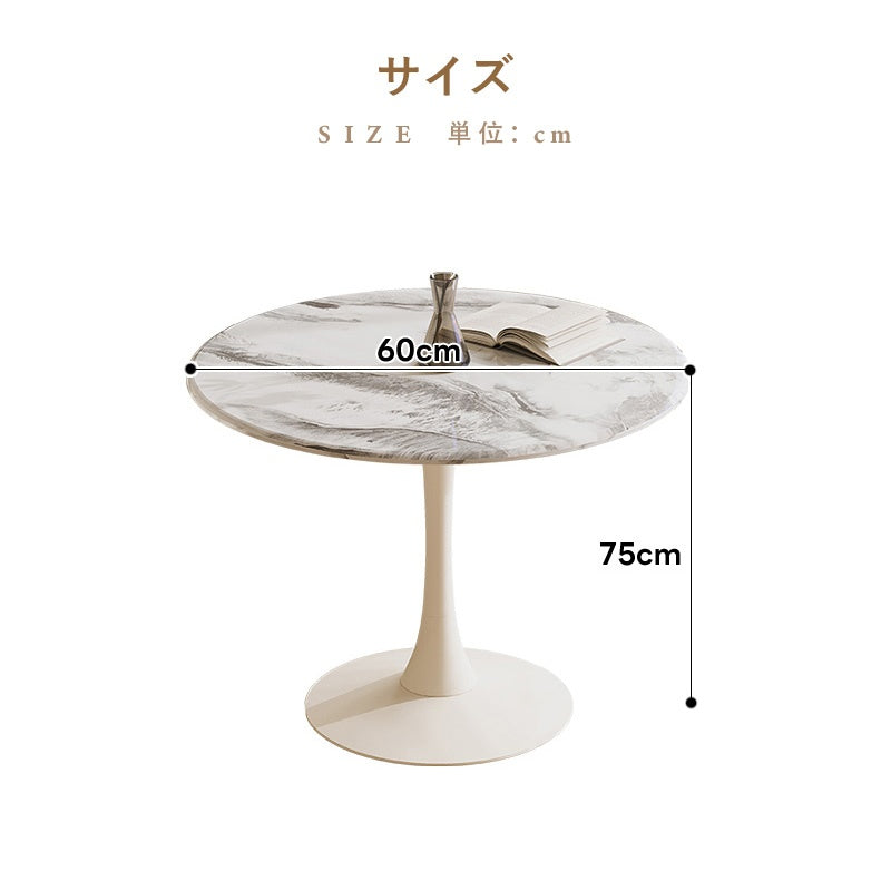 商品名 センターテーブル単品 商品番号 ybjg-table-002 生産国 中国 組立状態 要組立品(組立説明書を同梱発送いたします) 素材 天板:セラミック 脚:炭素鋼 サイズ(約) 直径60×高さ75cm 直径80×高さ75cm 直径100×高さ75cm カラー ホワイト ポイント 天板に耐熱・耐久性に優れたセラミックを使用したダイニングテーブル。 ■POINT1 耐摩耗と硬度 セラミックは硬く、傷がつきにくく、耐久性が高い素材です。 ■POINT2 耐熱 熱い鍋や調理器具を直接置いても、表面が損傷しにくく安心して使用できます。 ■POINT3 気軽にお手入れ 水拭きや中性洗剤で簡単にお手入れでき、日常使いに適しています。 ■POINT4 防水 吸水率が非常に低く、水分や液体が内部に浸透しにくい仕様です。 ■POINT5 耐凍 水分の浸透を抑える構造により、凍結による破損リスクを軽減します。 ■POINT6 紫外線防護...